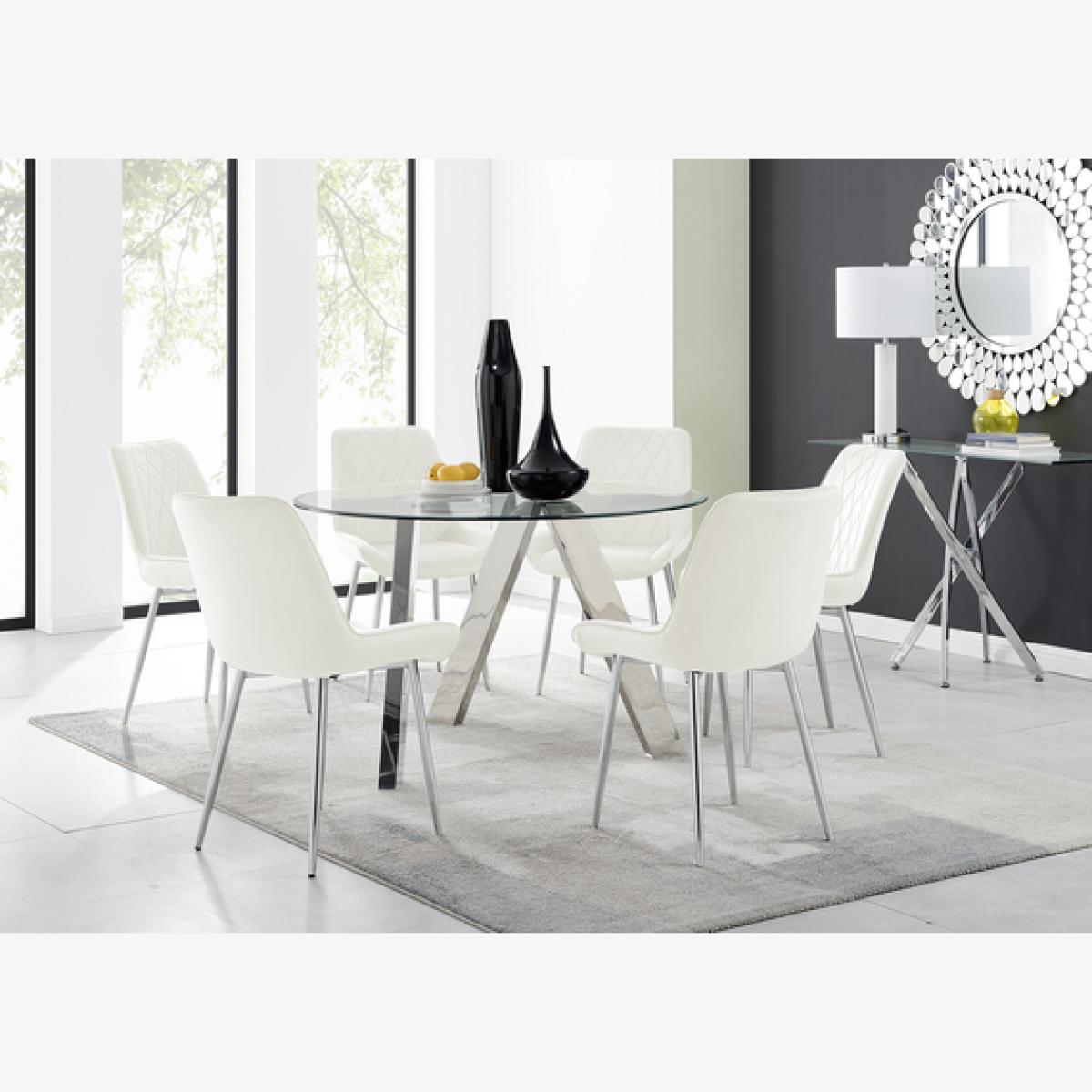 Lugano Round Dining Table and 6 Pesaro Silver Leg Chairs - Cream