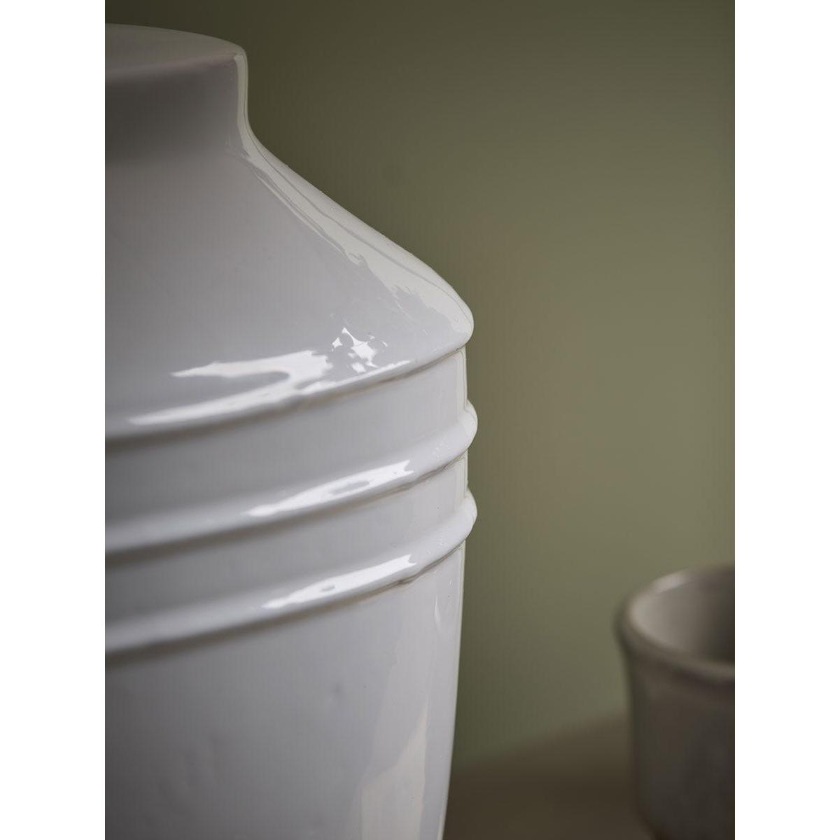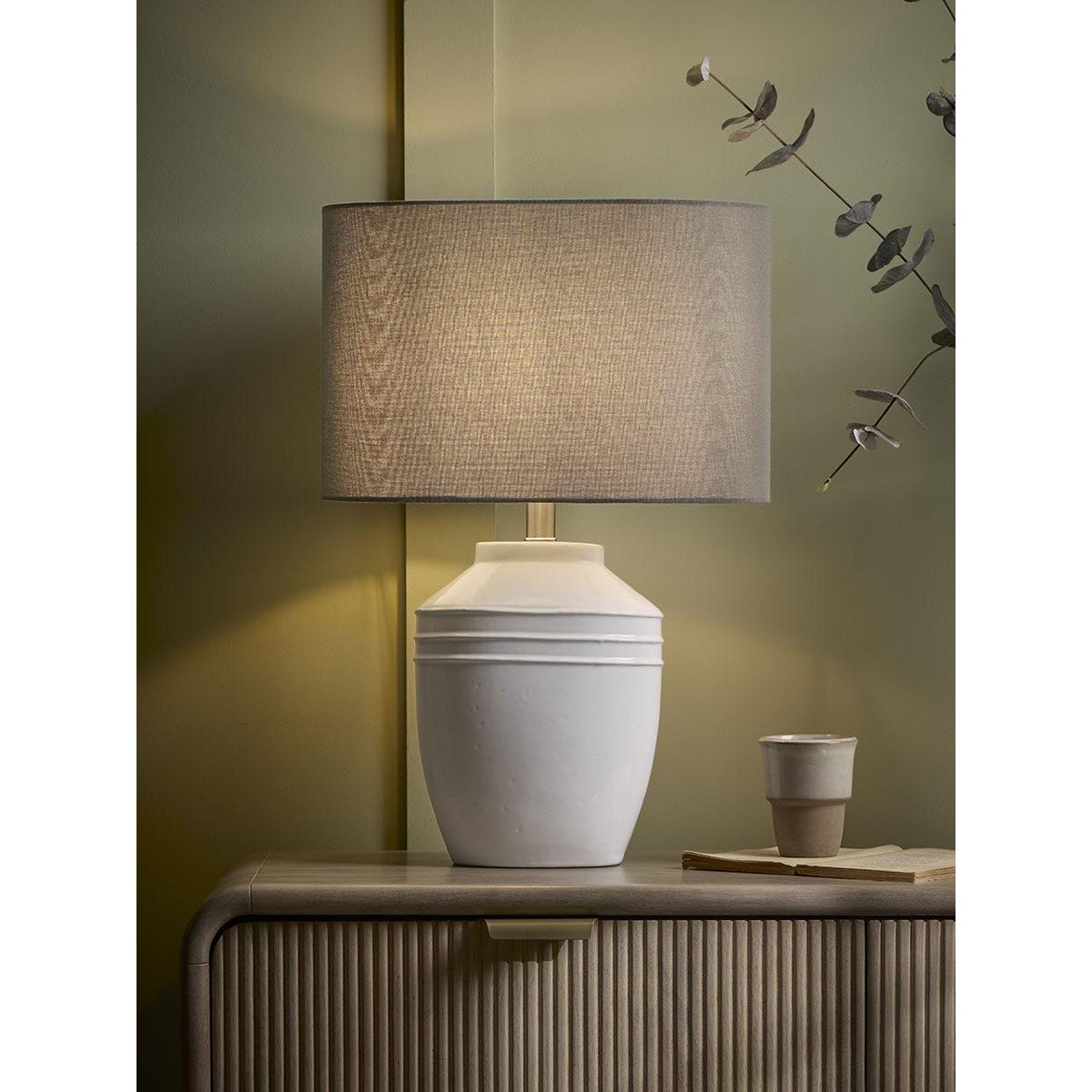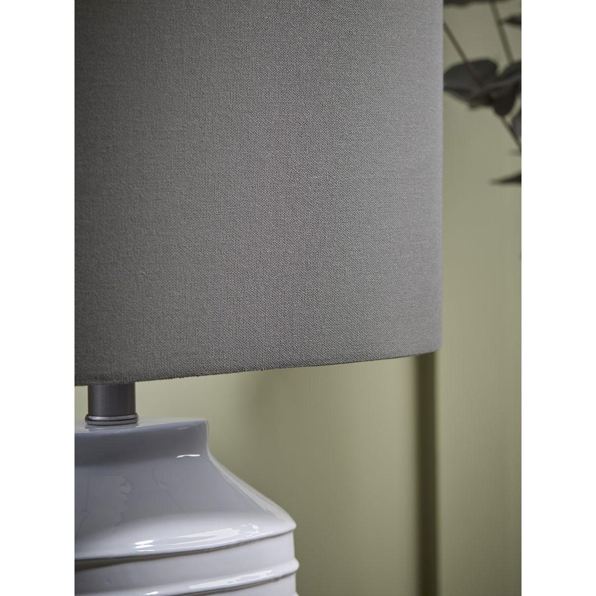 Handcrafted from ceramic, our Lugina table lamp has an urn-shaped base that inspires simplicity and elegance in your home. Intricate ridges create visual interest to the top of the base, whilst the grey shade pairs wonderfully with the lighter neutral tones on the base for a lamp that fits in our Scandi trend. Perhaps seemingly simple from the front, the lamp base is paired with an oval shade, meaning it can be placed up against walls and in smaller nooks of your home, adding light and warmth to each and every corner.