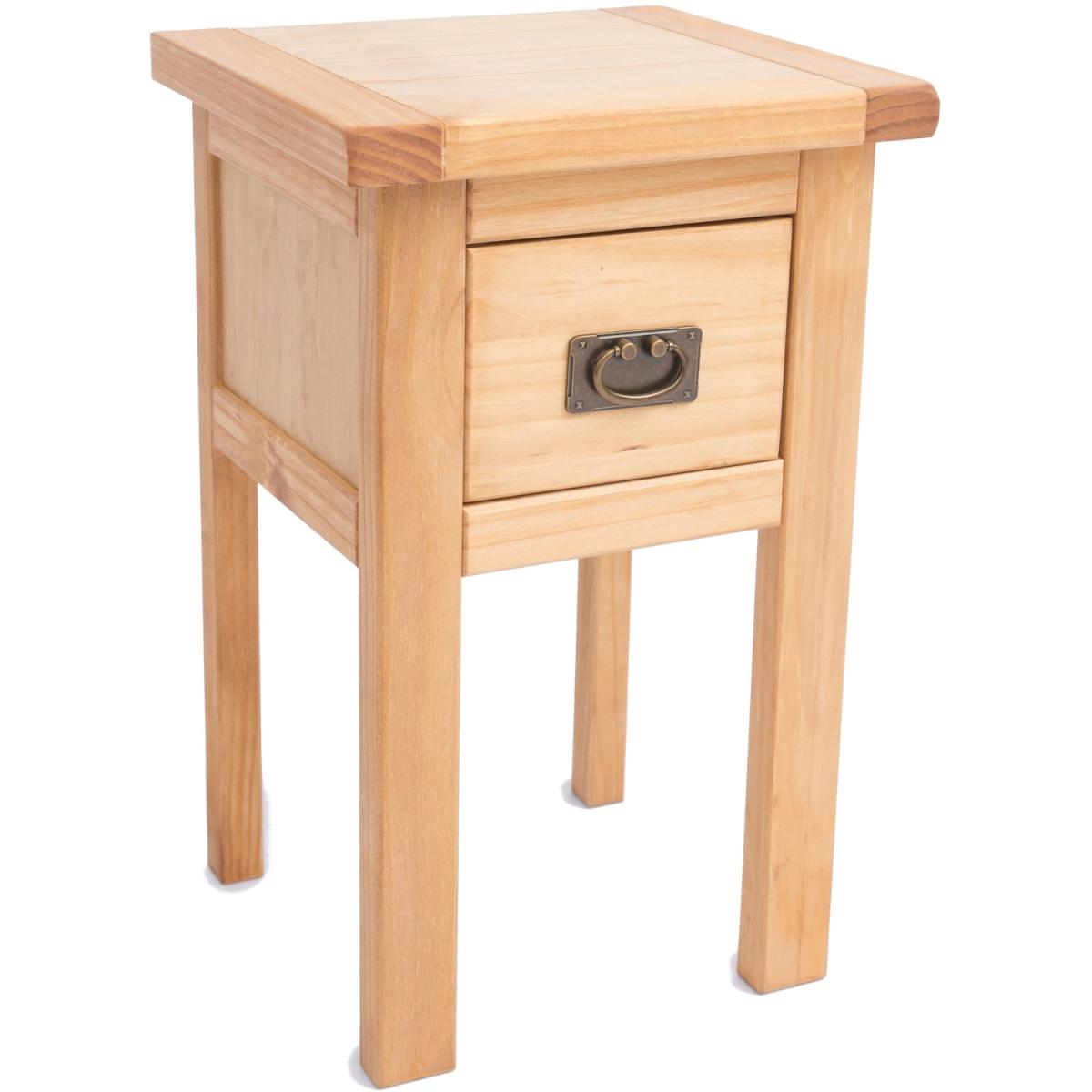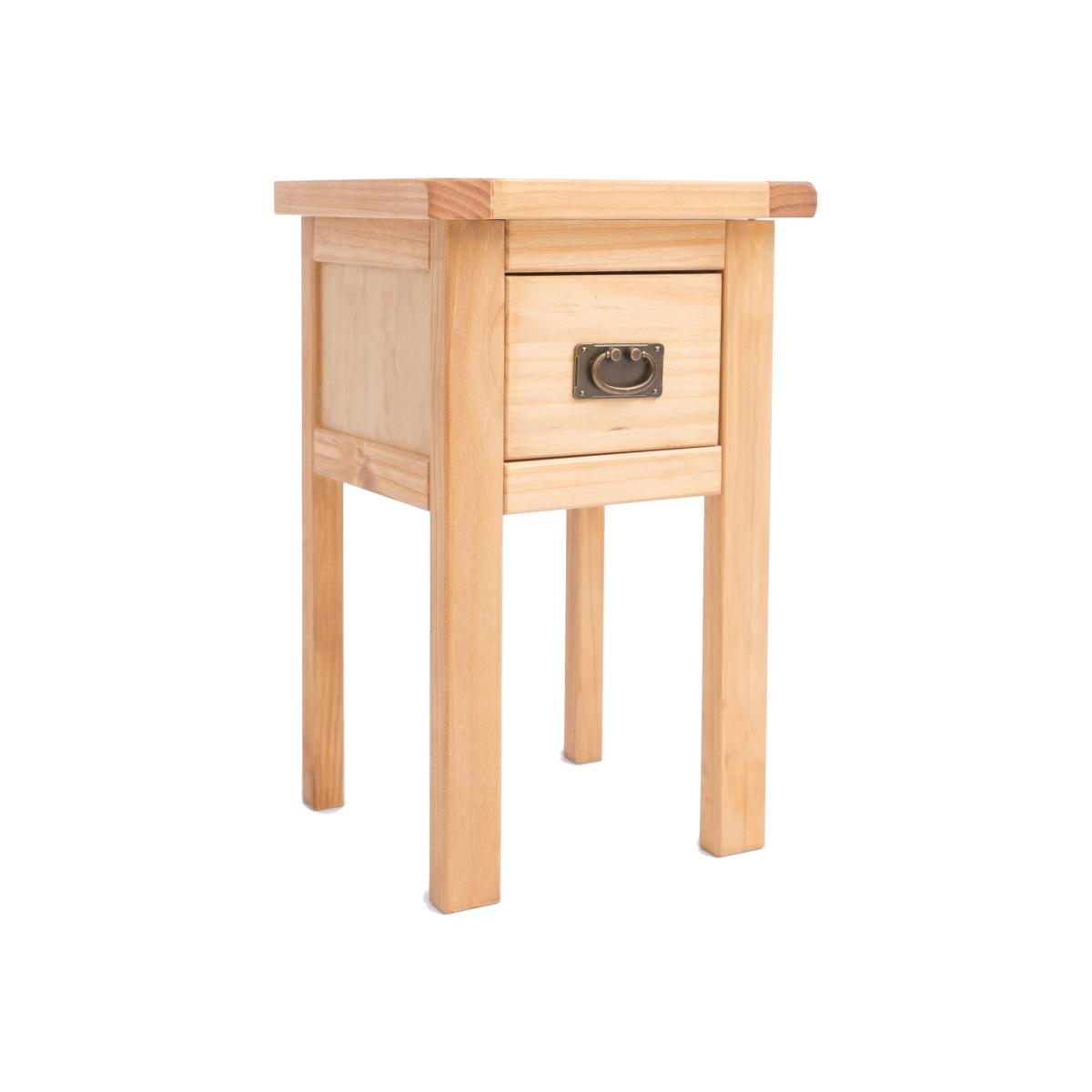 Our Lugo collection has a simple but pleasing design and is produced by our skilled craftsmen to the highest standards using responsibly sourced wood and veneers. All cabinets are made using a combination of solid pine wood and veneers and are carefully hand waxed on an antique finish giving them a great look. This petite bedside is perfect for any bedroom where space is at a premium. An ideal compact nightstand beside your bed, the traditional design has one drawer open below. The single drawer is just enough space to keep those essentials close to hand and the top provides space for your alarm or mobile. These attributes combined with a simple construction for easy assembly make it a great value product to be taken home today.