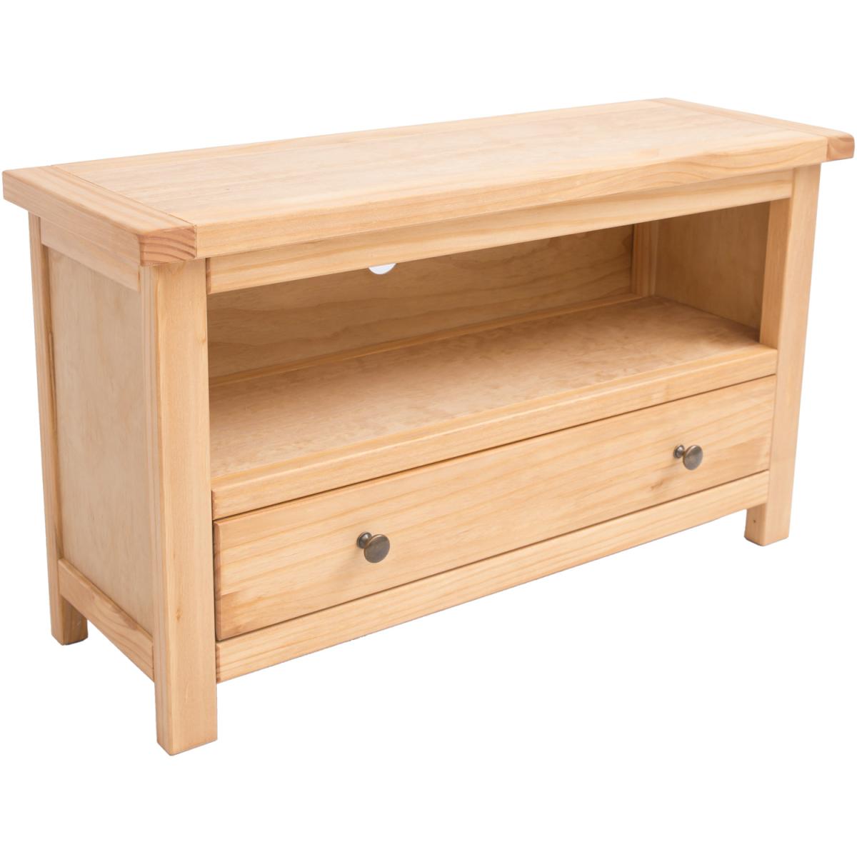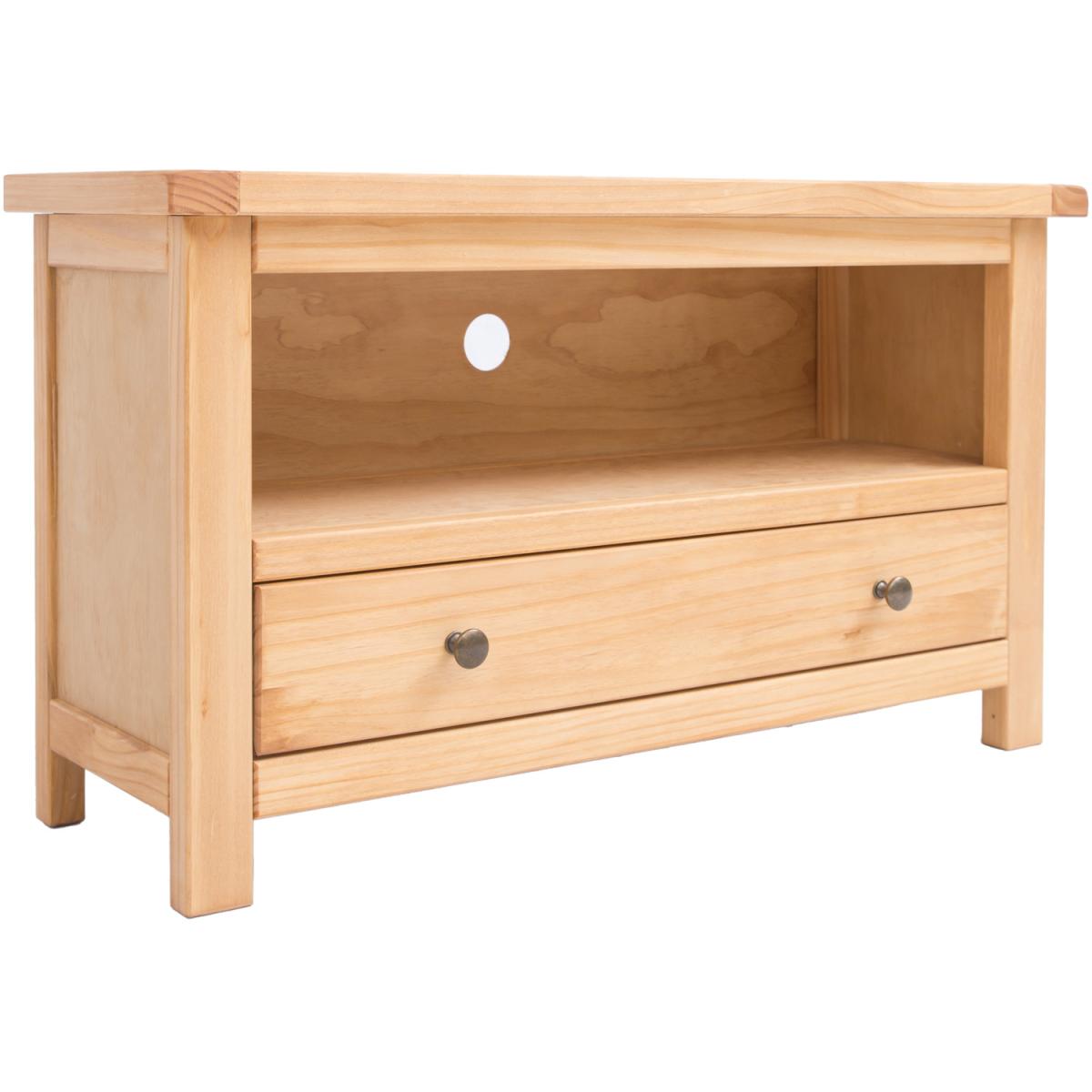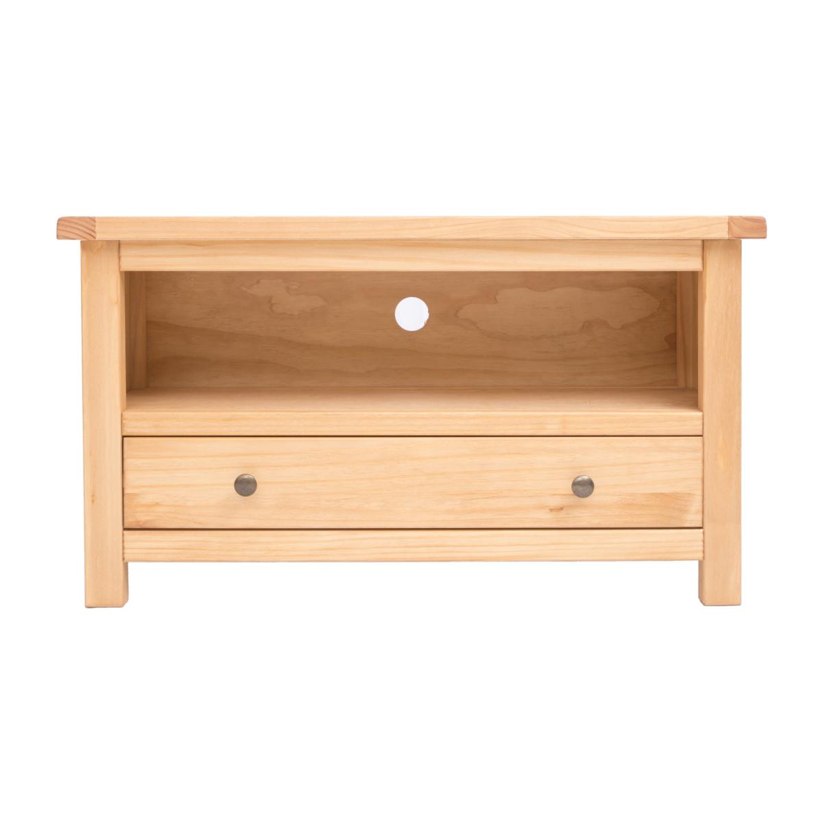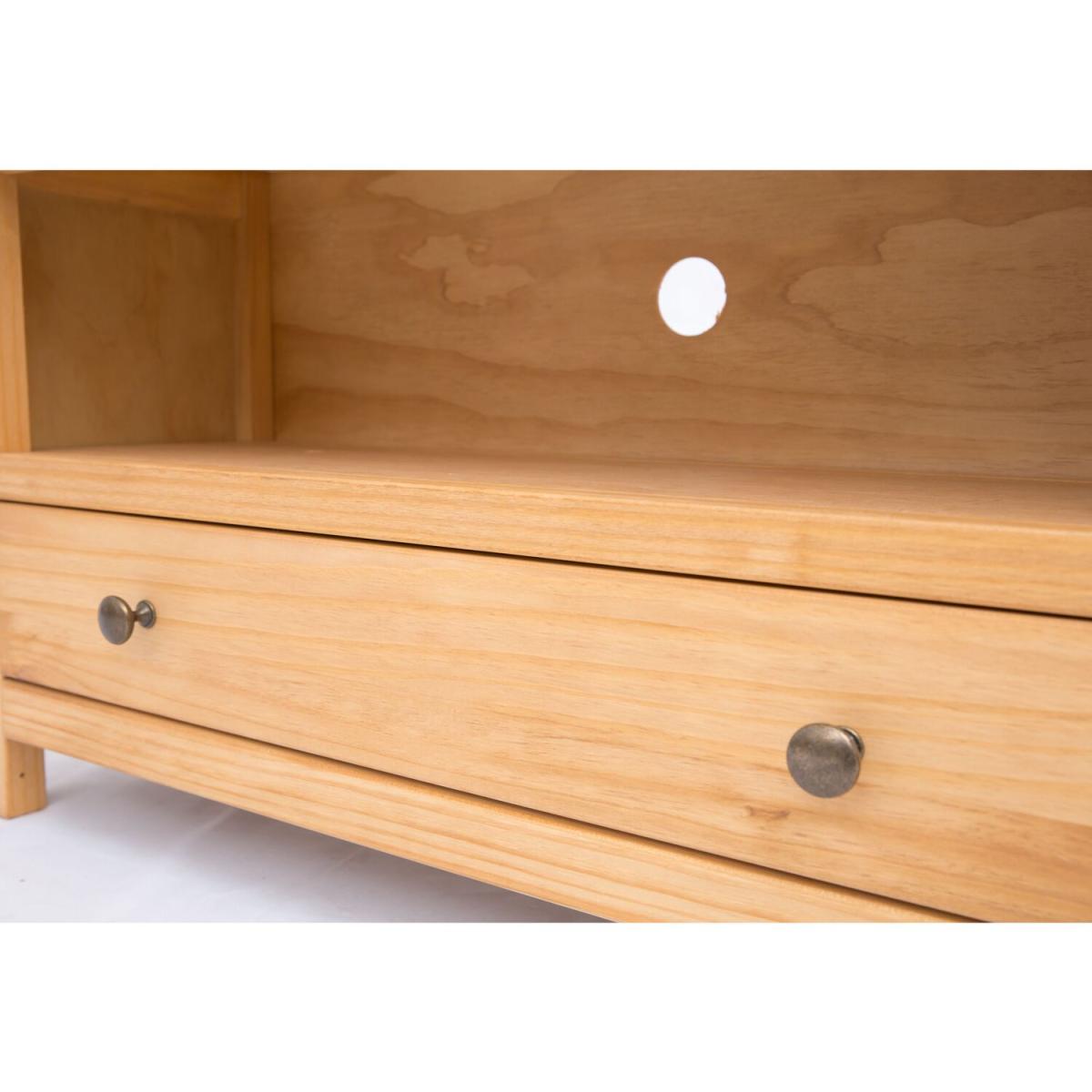 Our Lugo collection has a simple but pleasing design and is produced by our skilled craftsmen to the highest standards using responsibly sourced wood and veneers. All cabinets are made using a combination of solid pine wood and veneers and are carefully hand waxed on an antique finish giving them a great look. A compact and stylish TV unit with a full-width drawer at the bottom to store your remote controls and games consoles out of the way. Above the drawer is an open space for digital boxes or players, access for wiring is made easy by the cable holes cut out in the back of the unit.