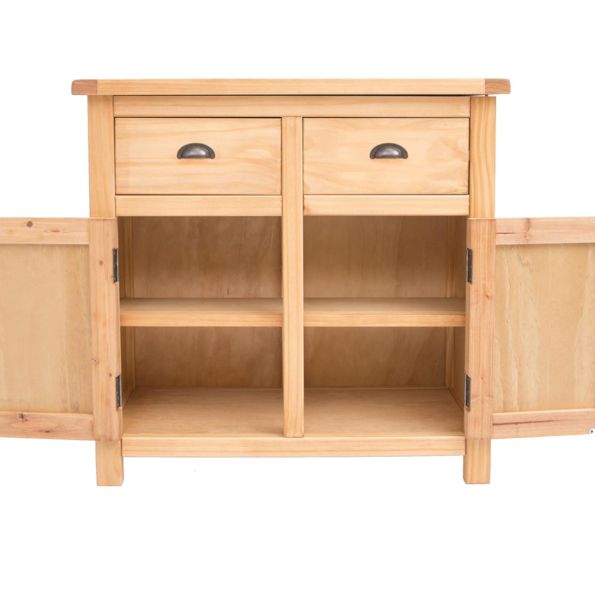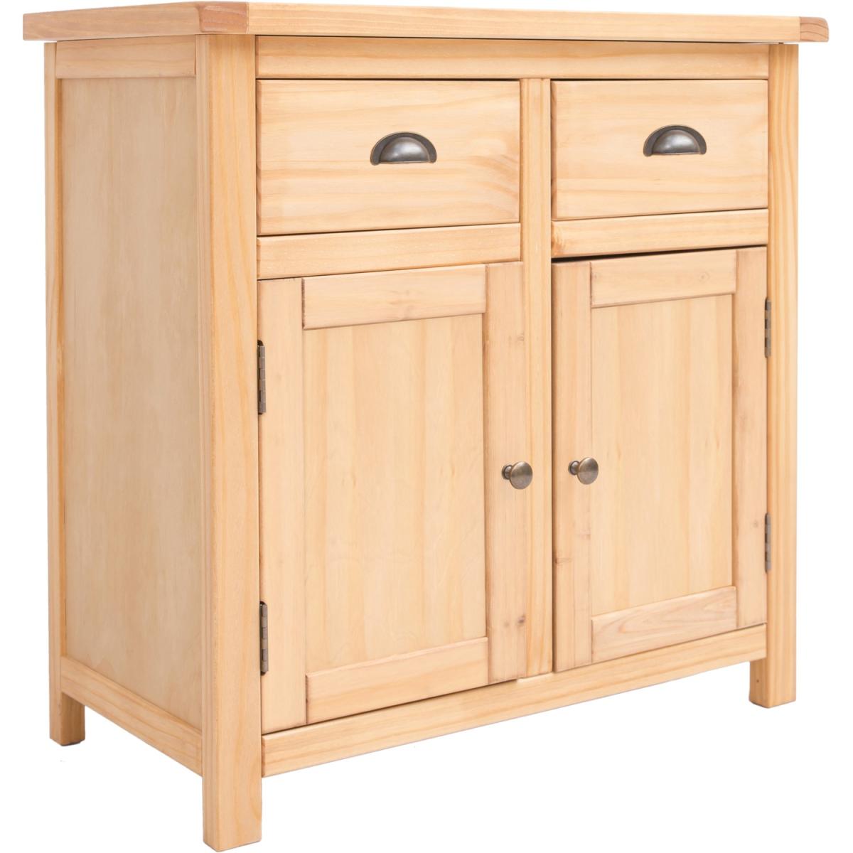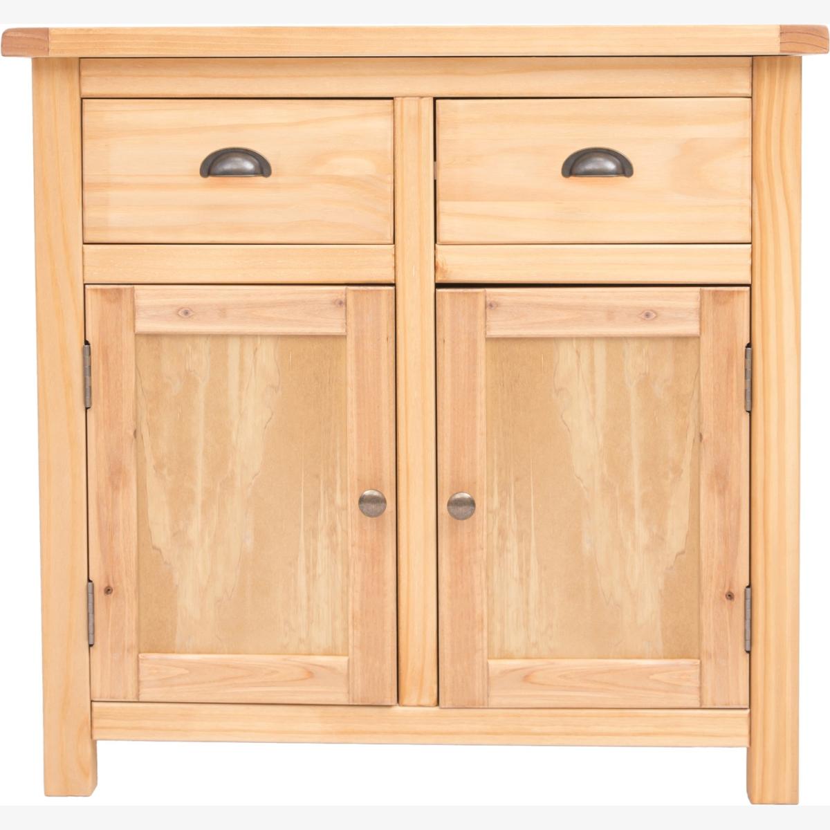 Our Lugo collection has a simple but pleasing design and is produced by our skilled craftsmen to the highest standards using responsibly sourced wood and veneers. All cabinets are made using a combination of solid pine wood and veneers and are carefully hand waxed on an antique finish giving them a great look. A compact 2-door 2-drawer sideboard ideal for your kitchen, dining room or lounge. The two doors conceal a large cupboard space for storing crockery, bottles or glassware and there is a shelf to help you organise your contents too. Above this, there are two drawers for cutlery, napkins, placemats or maybe even keeping essential paperwork to hand. These attributes combined with a simple construction for easy assembly make it a great value product to be taken home today.