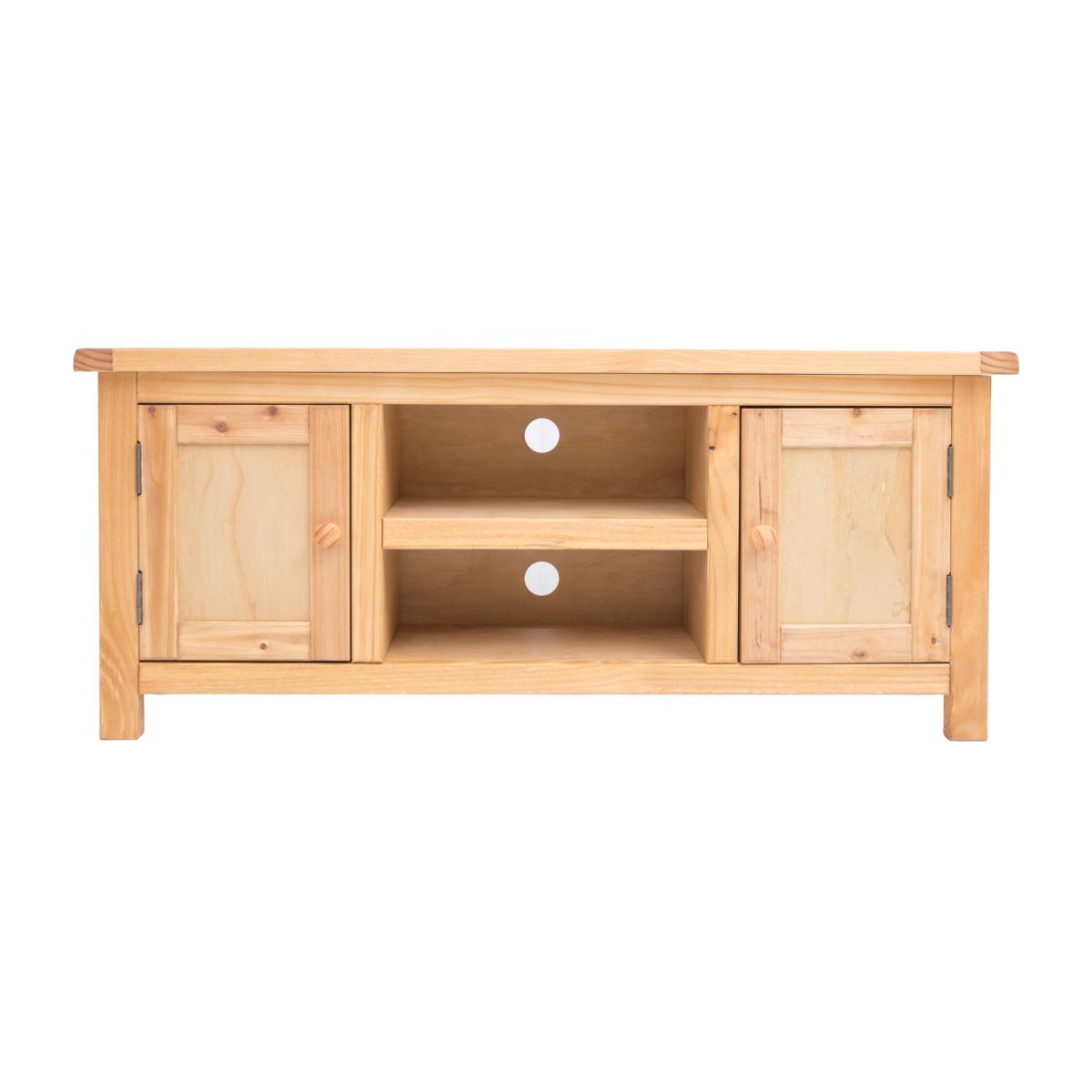 Our Lugo collection has a simple but pleasing design and is produced by our skilled craftsmen to the highest standards using responsibly sourced wood and veneers. All cabinets are made using a combination of solid pine wood and veneers and are carefully hand waxed on an antique finish giving them a great look. This large TV unit has a mixture of storage and open space to house all your TV-related items together. There is plenty of space on top for your TV, in the centre below is an open space divided by a shelf creating two storage areas, easy access for wiring is available through the cable holes on the back of the unit.