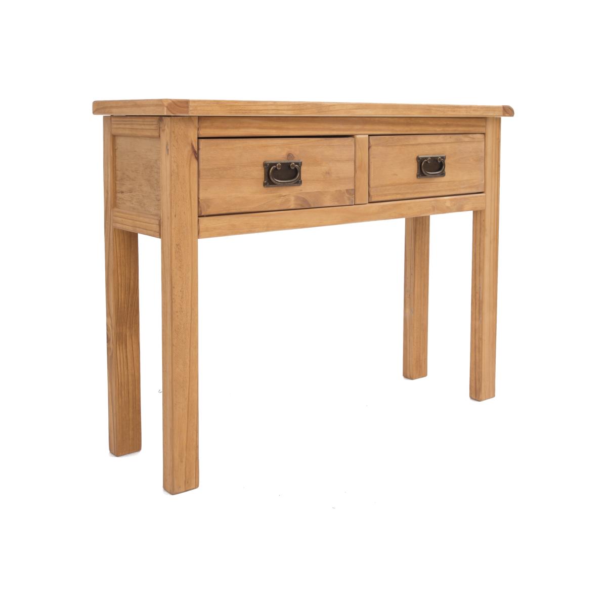 Our Lugo collection has a simple but pleasing design and is produced by our skilled craftsmen to the highest standards using responsibly sourced solid wood and veneers. All items are made using a combination of solid pine wood and veneers and are carefully hand-finished with an antique wax, giving the product a light rustic look. Added to these features is a simple construction for easy home assembly, making it a great value product to be taken home today. A stylish console table with two drawers would be ideal in a hallway for storage or as a side table in your lounge or dining room. The two drawers will store your paperwork, keys or other essentials close to hand.