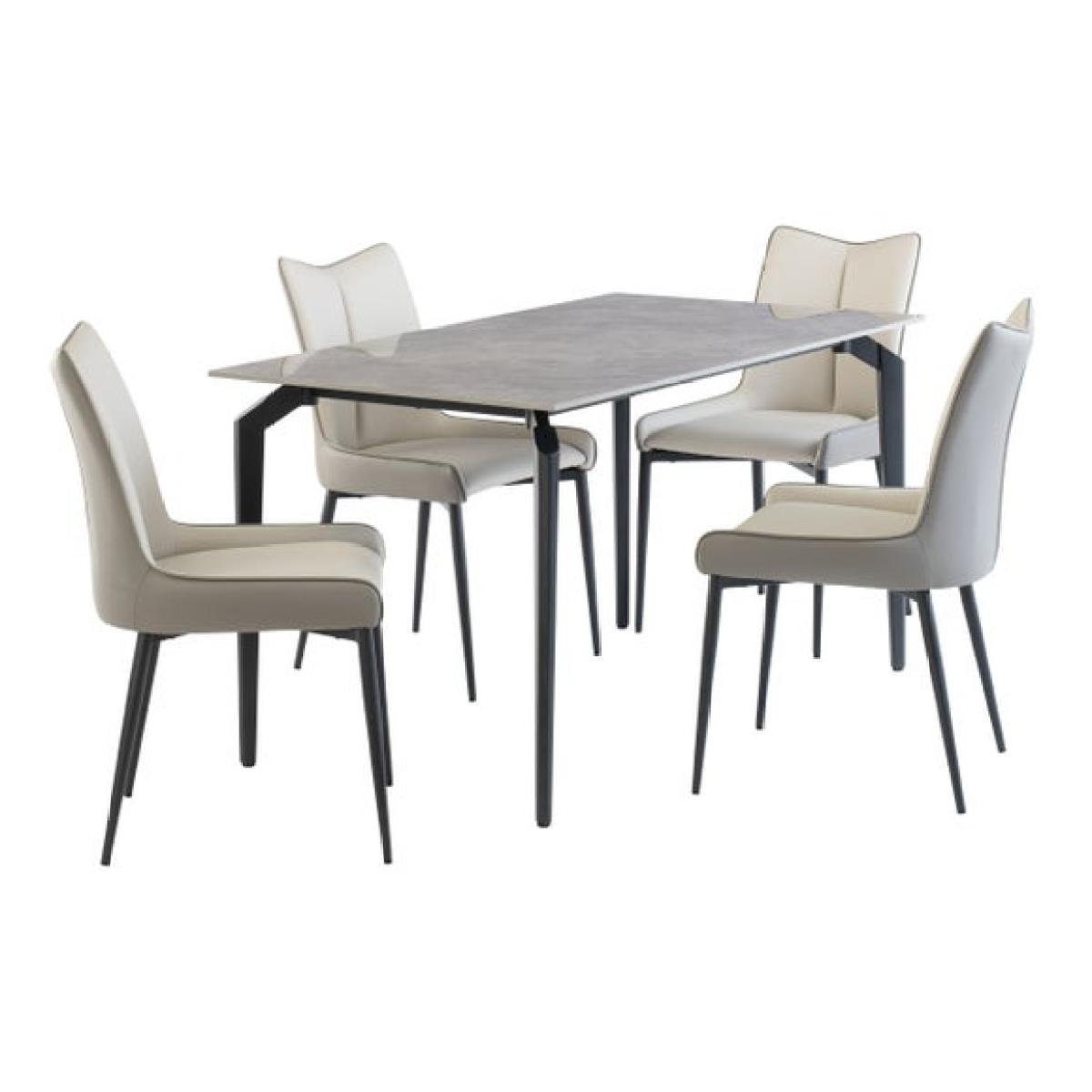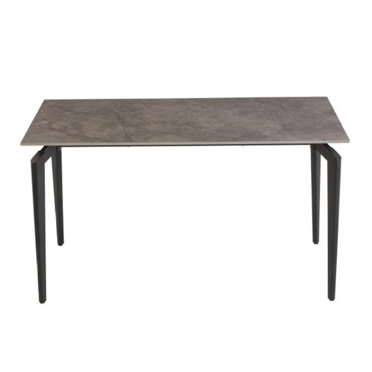 * Sintered table top * Wooden legs * Scratch, heat and water resistant This mid-sized table features a sintered stone top that’s sustainably made and built to resist scratches, heat, and water. Its clean, contemporary design makes it a versatile addition to any dining room, offering both style and substance.