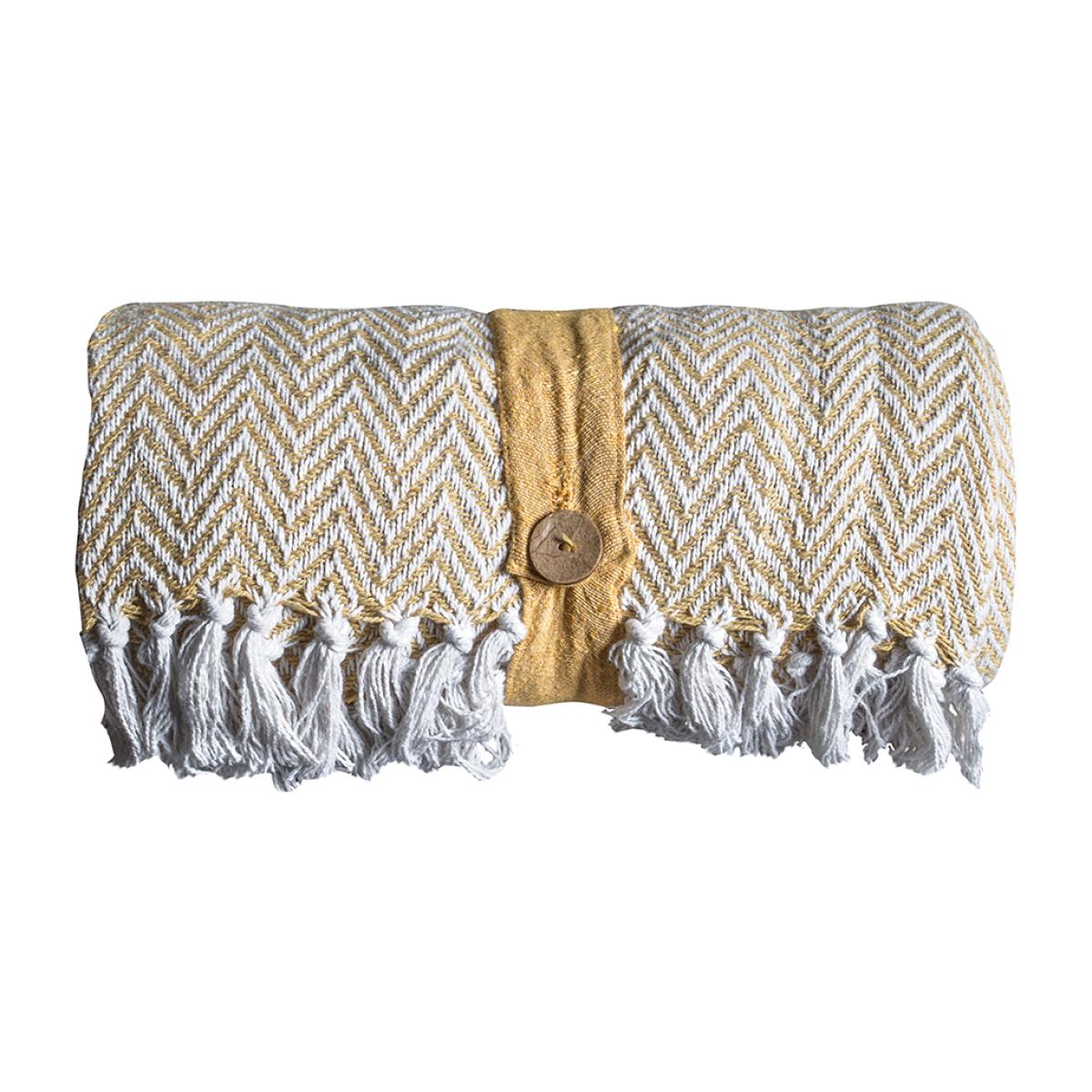 This mustard yellow throw is a versatile accessory that instantly adds warmth and colour to a variety of interiors. I love its combination of subtle pattern and soft tassels, which lend a relaxed yet polished touch. It's perfect for layering over a neutral sofa or bed to introduce a pop of colour without overwhelming the space. The earthy tone also works well in both traditional and contemporary settings - think cosy country cottages or modern minimal schemes. For styling, drape it loosely over the arm of a sofa or fold it to showcase the button detail for a laid-back look. It's a great way to add texture and colour, especially during the cooler months.
