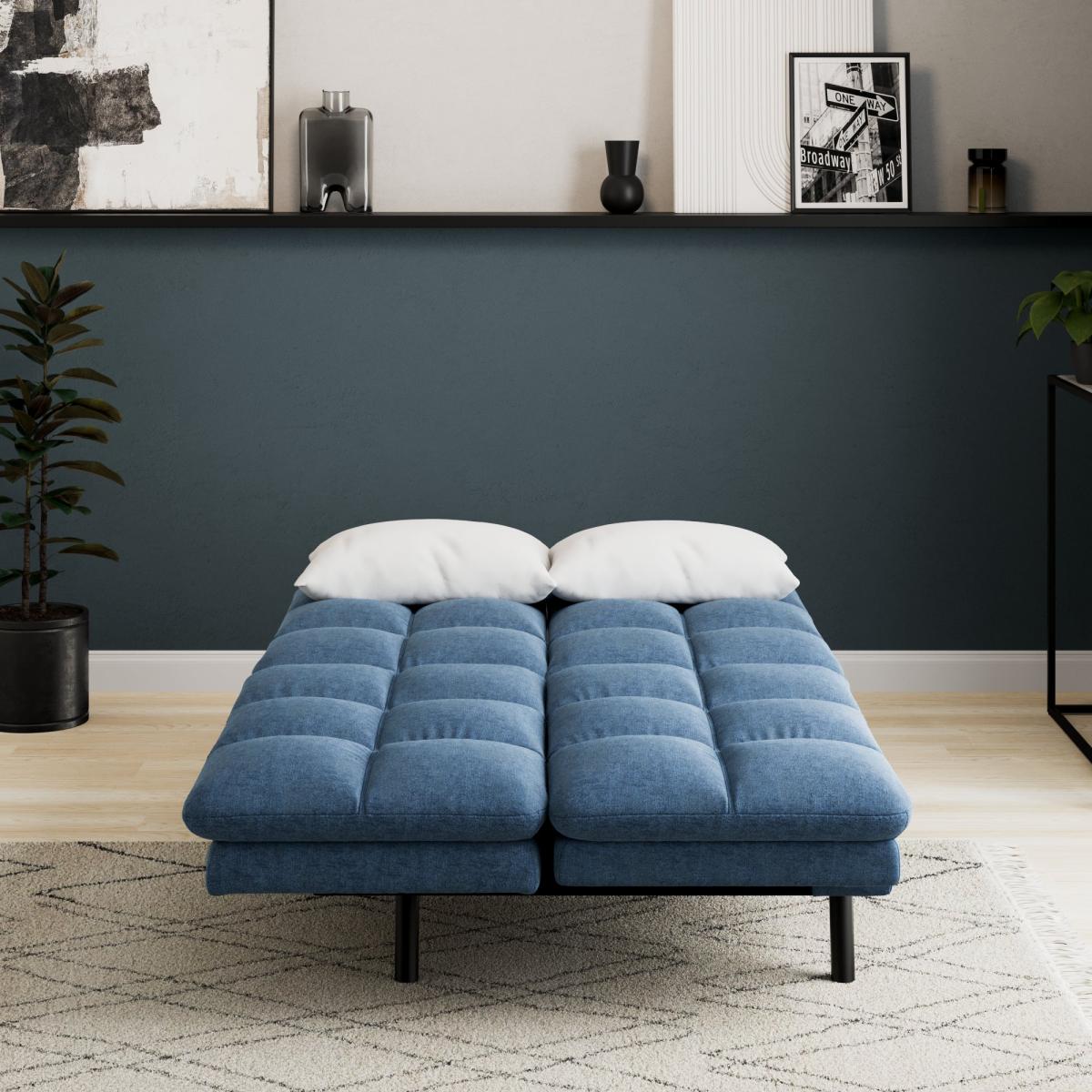 Upgrade your home with this retro inspired design sofa bed. A perfect addition to modern homes, it combines the comfort and cosiness of a sofa with the functionality of a bed when needed. This classic design features soft upholstery, adjustable armrests and sturdy metal legs ensuring that you can switch seamlessly between both functions.