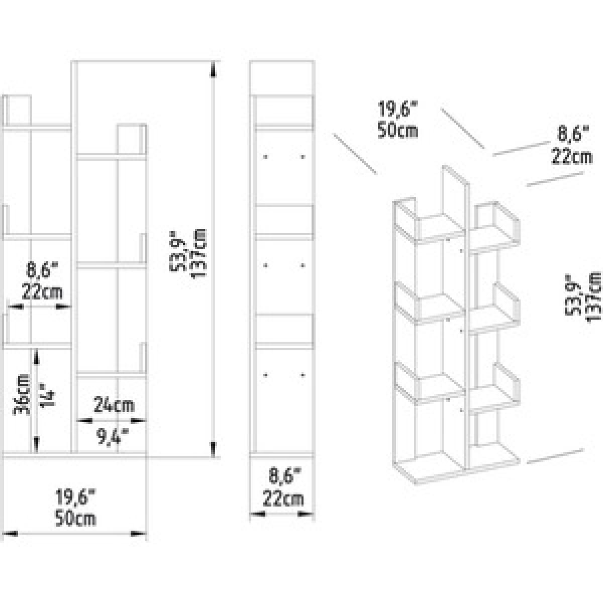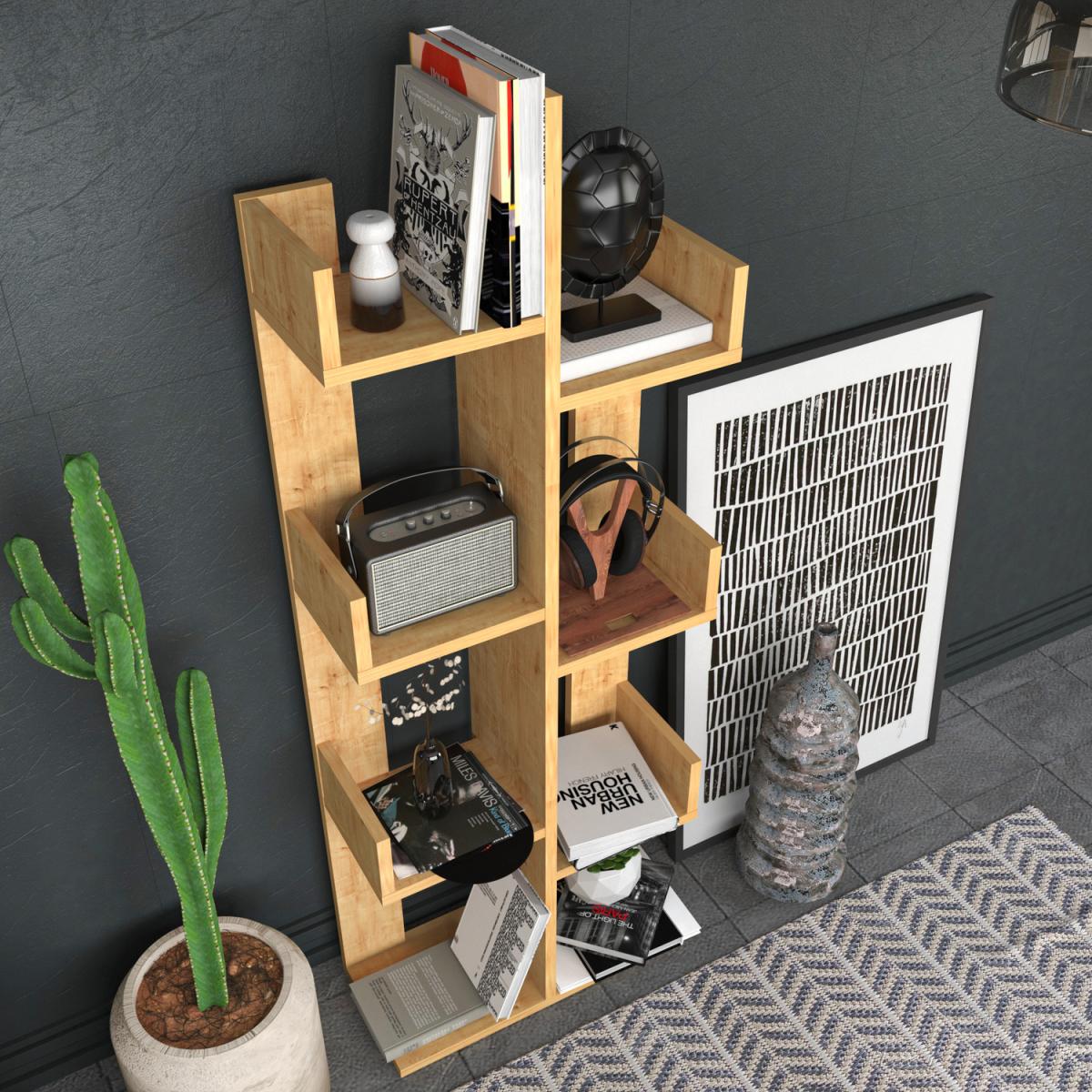 Luisa 140cm tall modern bookshelf has a unique tree-shaped design, adding an elegant look to your home/office decor. The bookcase with 4-tier half-backed 8 shelves provides enormous space for storing or displaying your books and decorative items. Side shelves prevent items from falling while the backboard and the baseboard ensure better load-bearing and stability. It can also be used as a storage shelf, plant stand or flower rack. Contemporary design allows it to easily complement your home or office decor. The bookshelf is made of 18mm thick melamine veneered particleboard and banded with PVC edge band. It is manufactured using health-friendly materials.