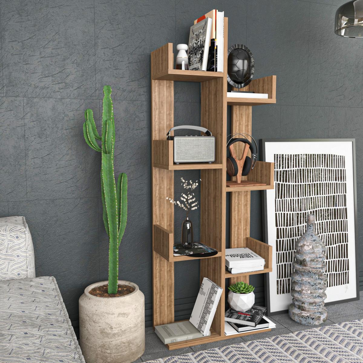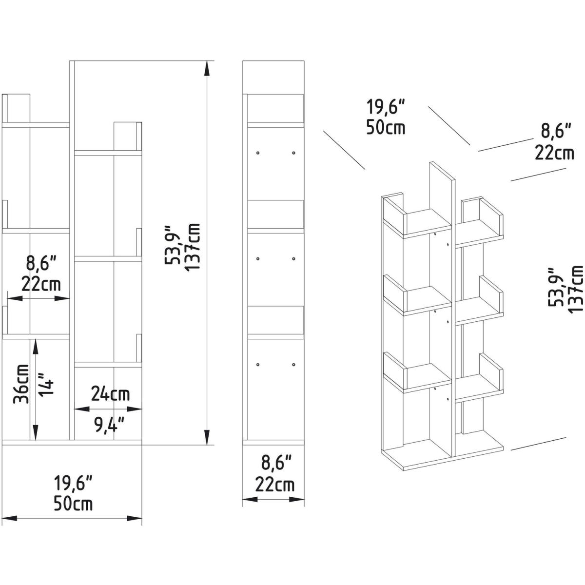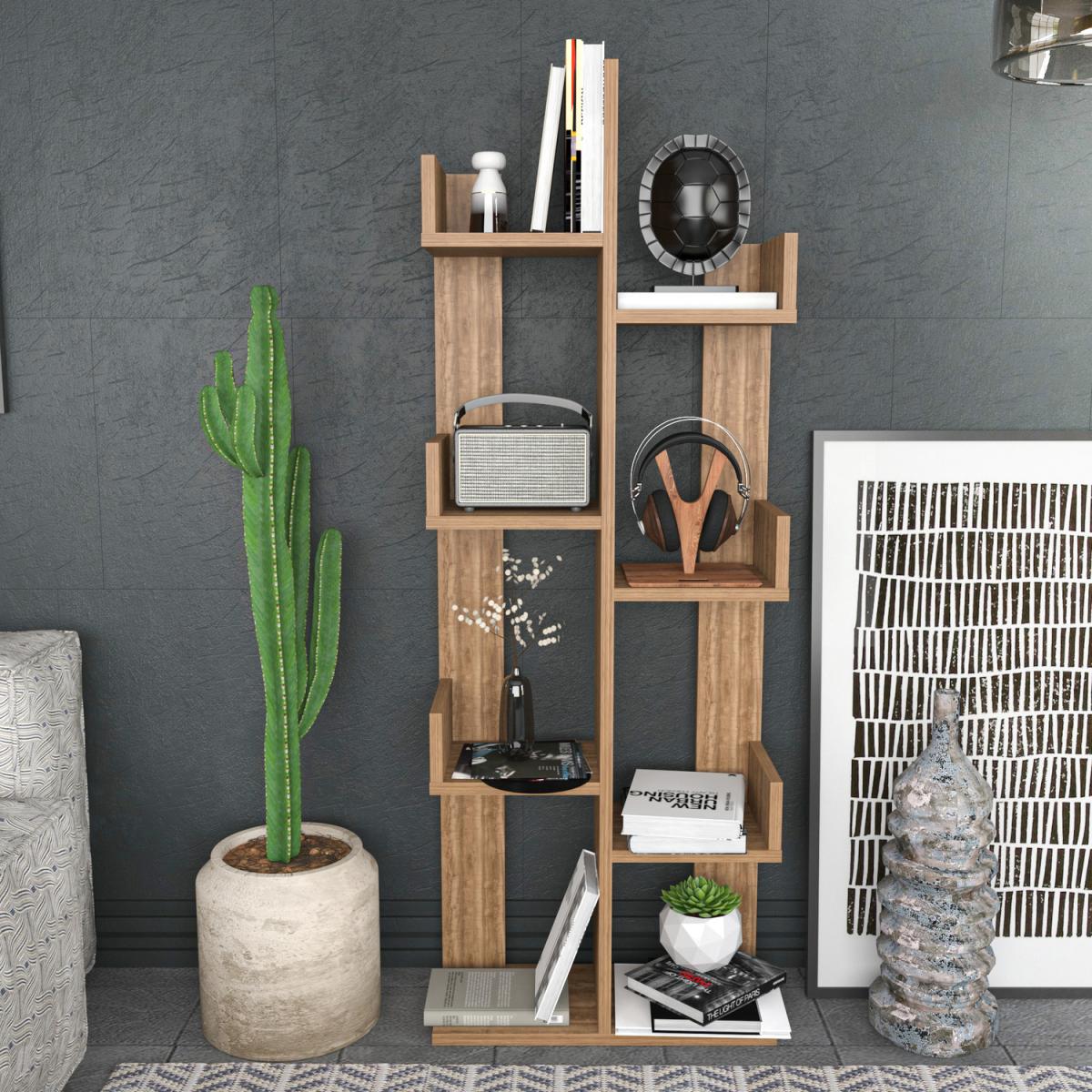 Luisa 137 cm tall modern bookshelf has a unique tree-shaped design adding an elegant look to your home office decor. The bookcase with 4-tier half-backed 8 shelves provides enormous space for storing or displaying your books and decorative items. Side shelves prevent items from falling while the backboard and the sideboard ensure better load-bearing and stability. It can also be used as a storage shelf, plant stand or flower rack. Contemporary design allows it to easily complement your home or office decor. It is manufactured using health-friendly materials.