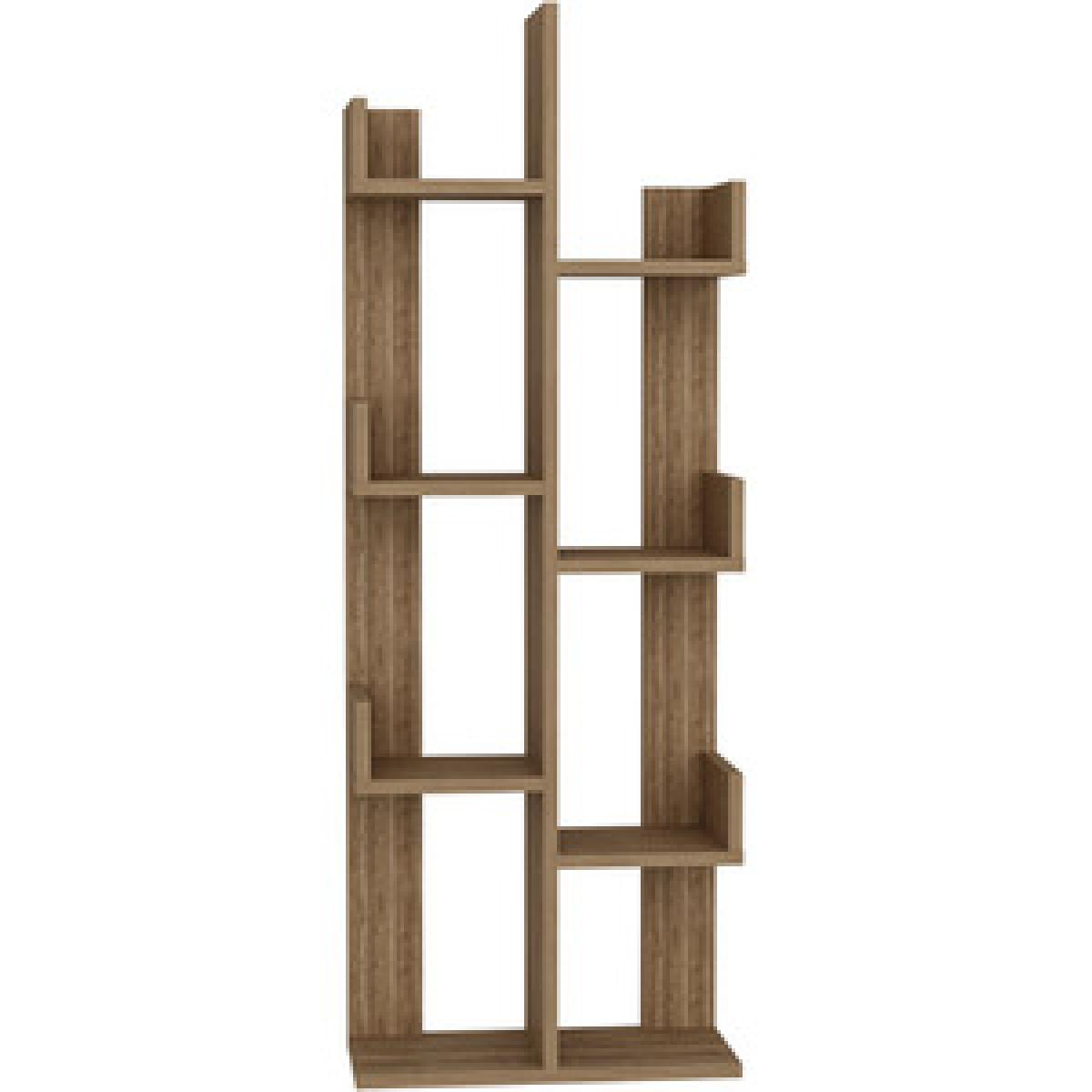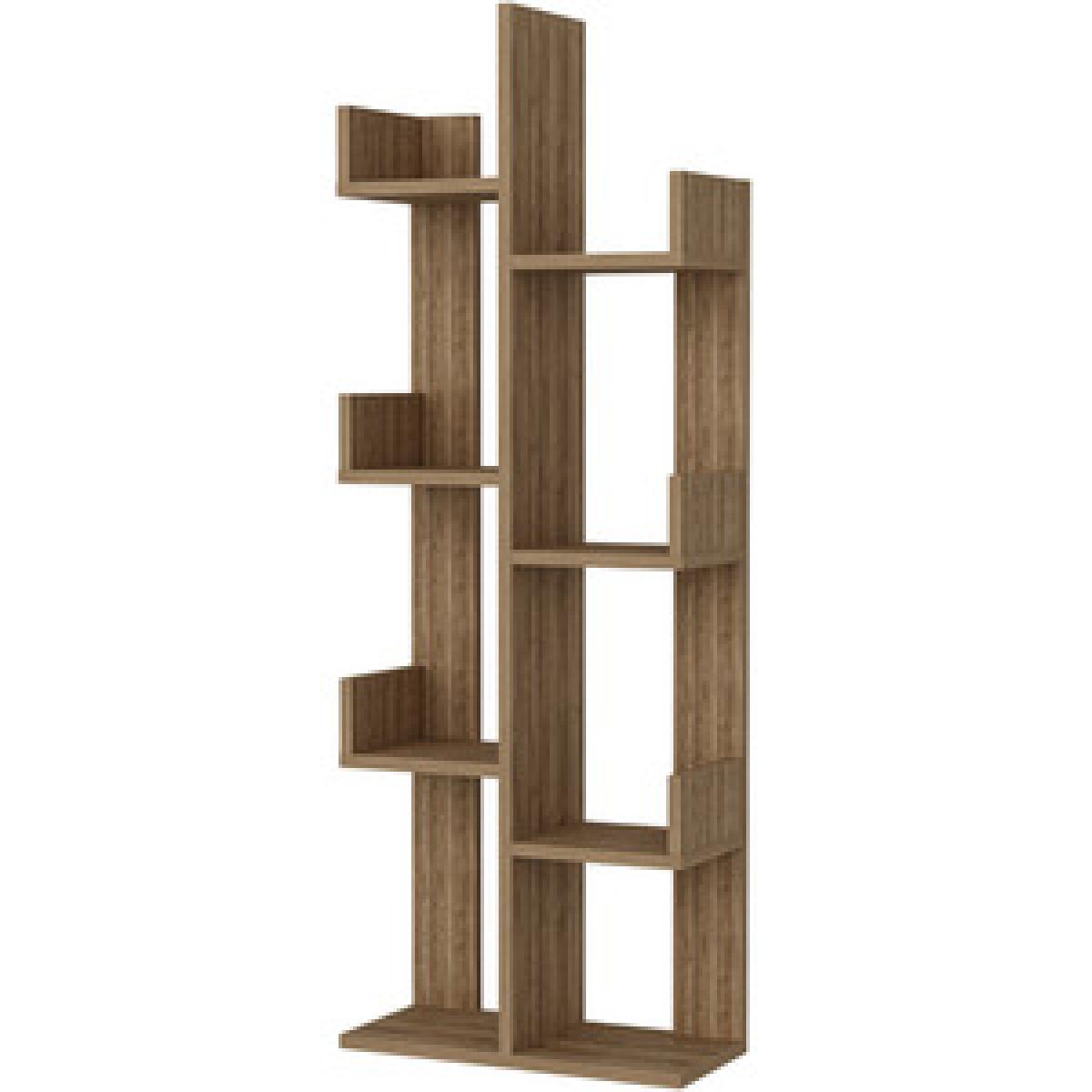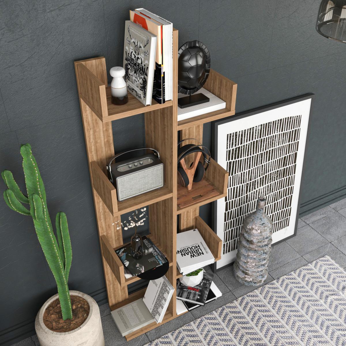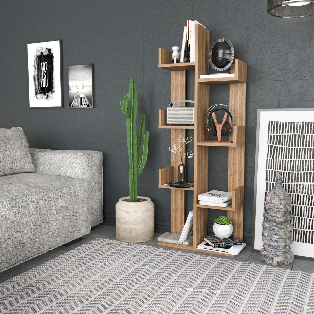 Luisa 137 cm tall modern bookshelf has a unique tree-shaped design adding an elegant look to your home office decor. The bookcase with 4-tier half-backed 8 shelves provides enormous space for storing or displaying your books and decorative items. Side shelves prevent items from falling while the backboard and the sideboard ensure better load-bearing and stability. It can also be used as a storage shelf, plant stand or flower rack. Contemporary design allows it to easily complement your home or office decor. It is manufactured using health-friendly materials.