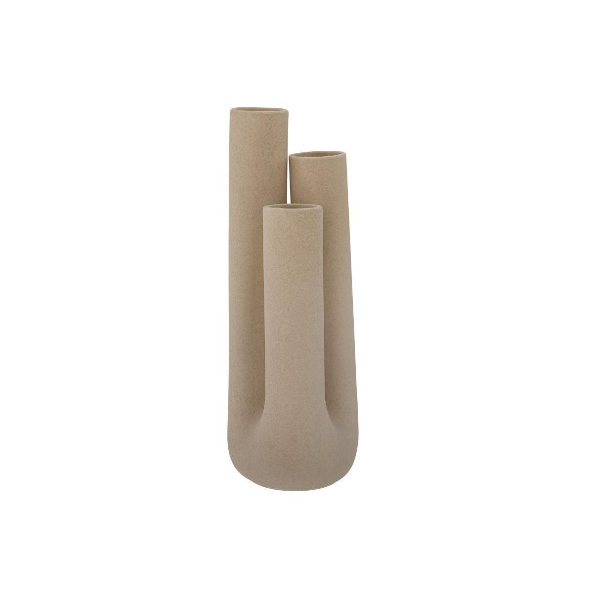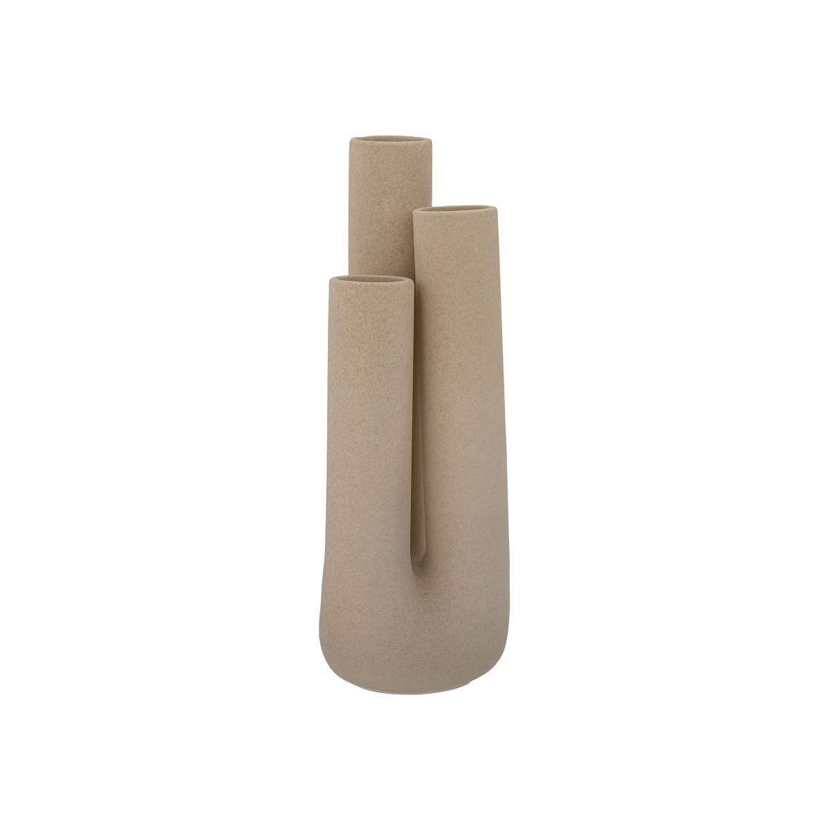 This sculptural vase is beautiful enough to be a decorative piece in its own right. Thanks to its three openings, it wonderfully showcases your flowers. This vase is made with sandstone, painted in a natural colour with a coarse finish to create an authentic look.