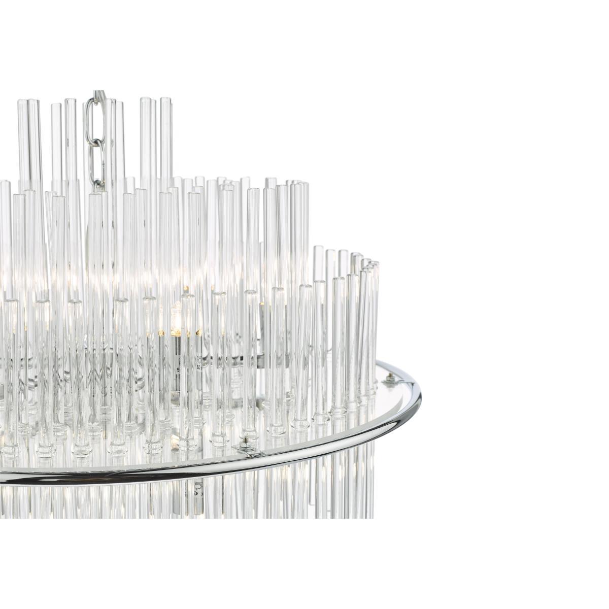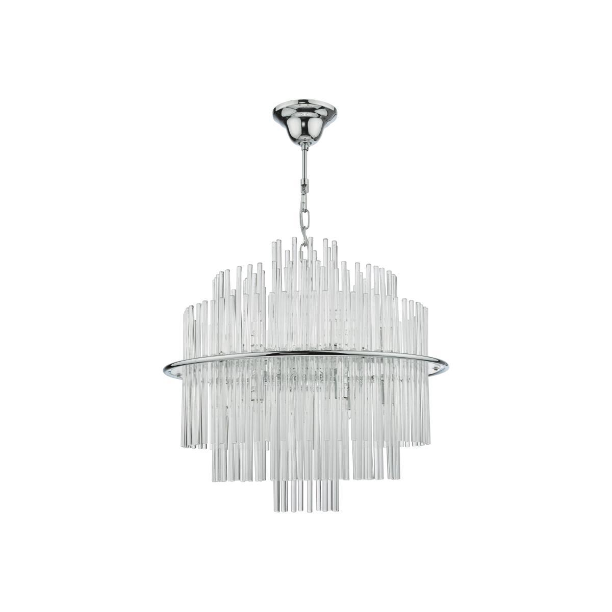 Add a glimmer of glamour to your space with the Lucas 13 light pendant. Enjoy incredible Art Deco design in the form of stunning light with polished chrome finish and tiered glass rods. Why you'll love it Glamorous tiered light pendant. Beautiful glass rods for an Art Deco feel. Stunning polished chrome finish. Height- adjustable design that fits most ceilings. What you need to know Made from steel and glass. Dimmable with compatible lamps. G9 bulb type (not included) Dimensions:Height: 48 cm (19 in) Width: 50 cm (20 in)