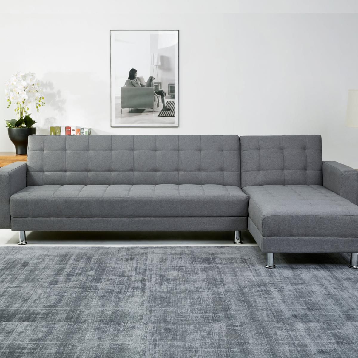 The Lukas 4 Seater Corner Sofa Bed features a high quality fabric finish and a modern, simple design which allows you to convert a corner sofa into a large sofa bed within seconds. Its clever design means that the chaise end unit can be slotted on to either end of the sofa section to create a left hand facing or right hand facing unit. Both arms can also be easily removed and reattached and the corner unit can be converted into 2 separate seating areas - a chaise longue and a 3 seater sofa - if desired. To check out our handy sizing guide to help you find out if you’ll be able to get your new furniture into your home. Need to throw out your old sofa first? View our information on. Furniture recycling and collections.