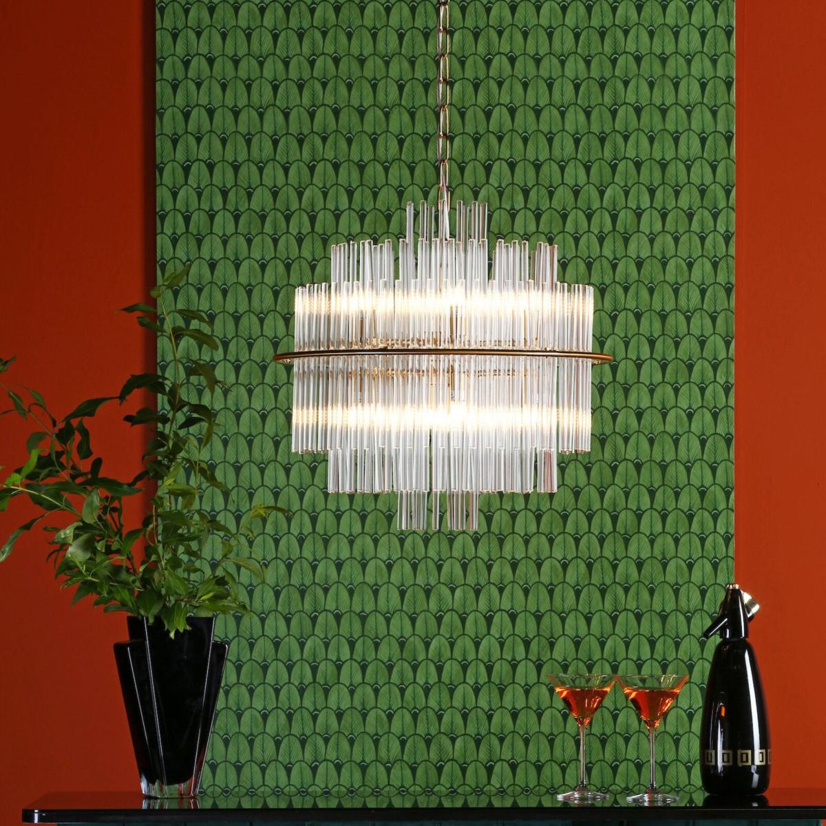 Lukas 13-light pendant ceiling light, consisting of hundreds of tiered glass rods appearing to give a floating illusion inside an antique gold band. Make a bold statement with the stunning Lukas 13-light pendant ceiling light, a showstopping centrepiece for any room. This luxurious design features hundreds of tiered glass rods, meticulously arranged to create the illusion of floating within a sleek antique gold band. The cascading glass rods catch and reflect light beautifully, adding depth and brilliance to your space. Perfect for dining rooms, grand foyers or living areas, the Lukas pendant light exudes elegance and sophistication. Its combination of modern glamour and timeless charm makes it a striking addition to contemporary and classic interiors alike. Lukas 13-light pendant ceiling light, consisting of hundreds of tiered glass rods appearing to give a floating illusion inside an antique gold band. Make a bold statement with the stunning Lukas 13-light pendant ceiling light, a showstopping centrepiece for any room. This luxurious design features hundreds of tiered glass rods, meticulously arranged to create the illusion of floating within a sleek antique gold band. The cascading glass rods catch and reflect light beautifully, adding depth and brilliance to your space. Perfect for dining rooms, grand foyers or living areas, the Lukas pendant light exudes elegance and sophistication. Its combination of modern glamour and timeless charm makes it a striking addition to contemporary and classic interiors alike.