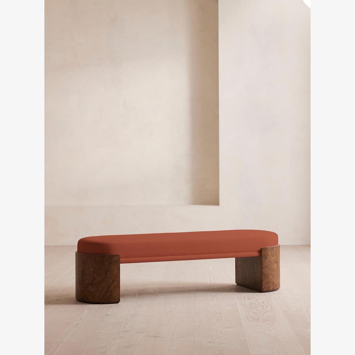 I’m a fan of this bench for its clean lines and soft linen upholstery in that muted terracotta tone - it brings warmth without overpowering a room. The solid oak legs give it a sculptural feel that works particularly well in Scandi-inspired, mid-century or contemporary schemes. Styling tip: pop it at the foot of the bed with a folded throw or a couple of low-profile cushions in contrasting neutrals. It’s also ideal as hallway seating - add a slim console nearby and a basket underneath for shoes or throws, and you’ve got a practical yet polished look.