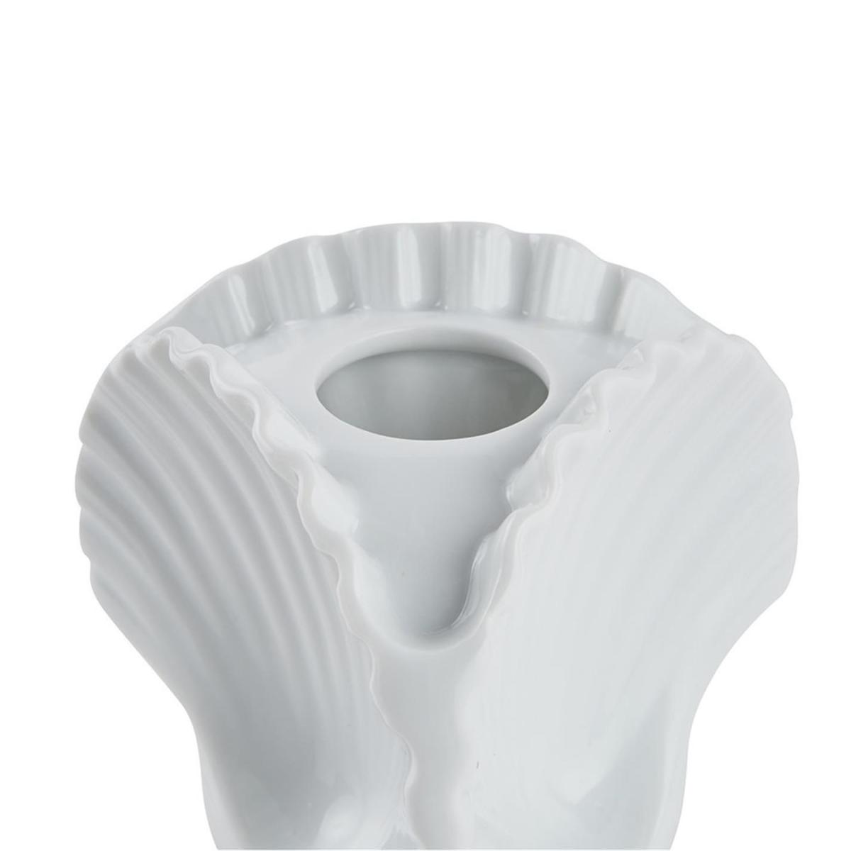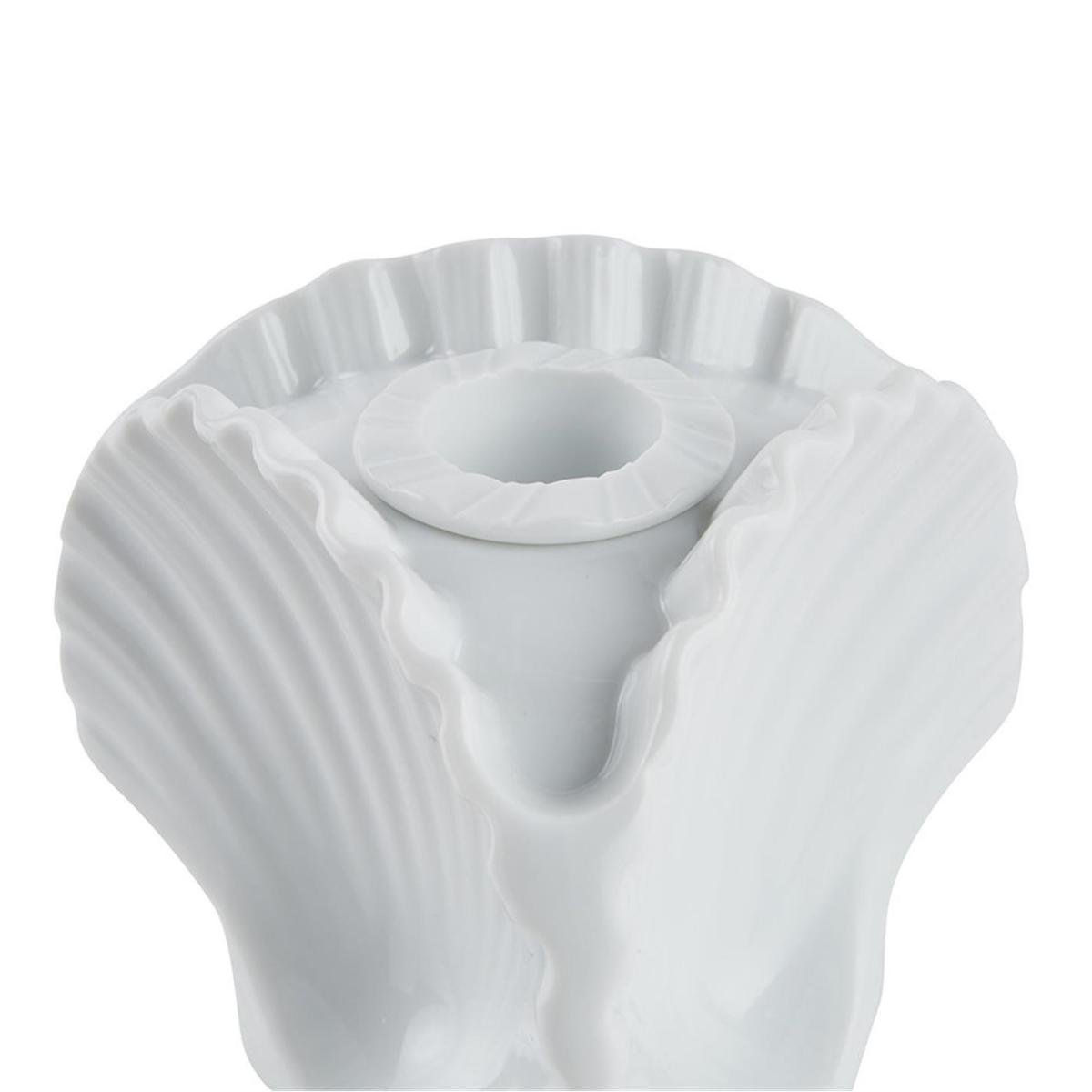 I love this shell-shaped vase and candle holder for its playful yet sophisticated silhouette, which can effortlessly add a touch of coastal charm or modern elegance to a variety of interiors. It works particularly well in both contemporary and eclectic spaces, where its unique form can serve as a statement piece on a side table or shelf. Practical styling tips include grouping it with other natural textures like woven baskets or adding a small, neutral arrangement of flowers inside for colour contrast. When used as a candle holder, its serene white glaze makes it perfect for creating a calming glow, especially in minimal or seaside-inspired schemes. Keeping it simple and letting the form take centre stage is the key to making this piece a versatile addition to your decor.