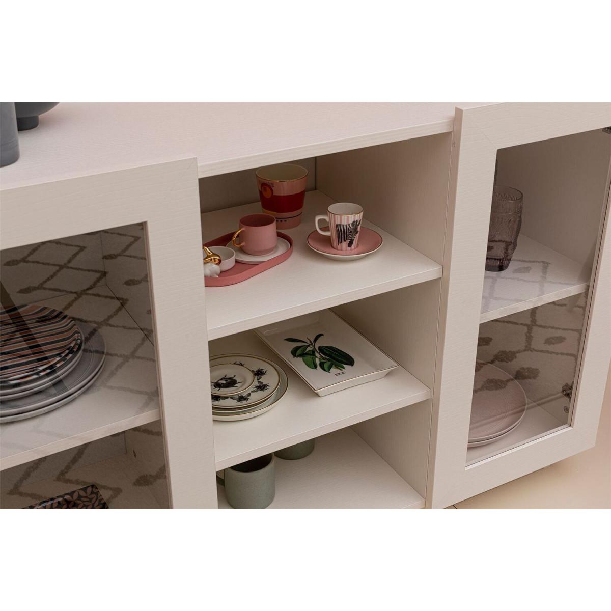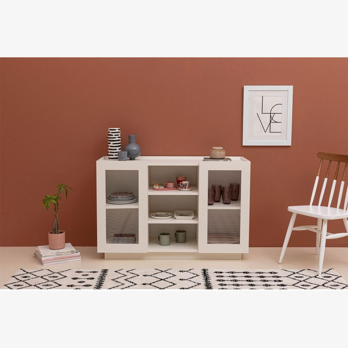 The Luke sideboard with glass door is a versatile piece that works well in both modern and Scandinavian-inspired interiors. I love its clean, minimalist design and practical glass-fronted section which adds an element of visual interest while keeping essentials visible. It’s ideal for living rooms or dining areas where you want to showcase decorative items or crockery, but still maintain a tidy appearance. For styling, I recommend layering with a few statement objects or some greenery on top, and pairing with textured rugs or textiles to add warmth. Its white finish makes it adaptable to various colour schemes and helps brightening smaller spaces. Overall, it’s a functional and sleek addition that can create a streamlined, uncluttered look.
