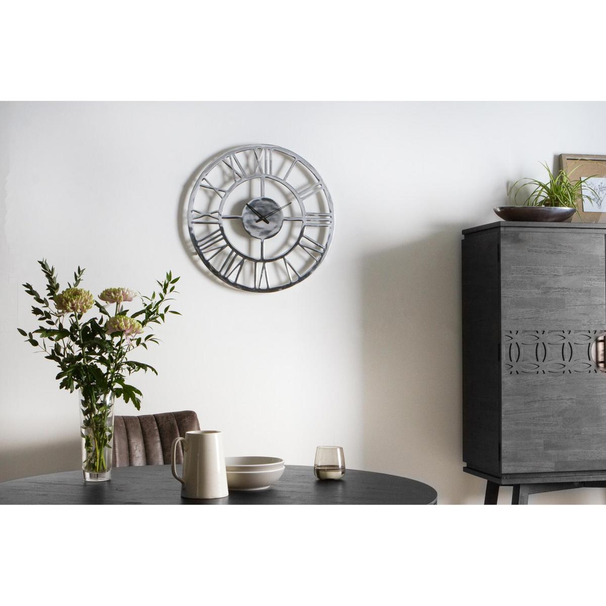 I love this wall clock for its minimalist yet industrial design, making it a versatile piece that can complement a variety of interiors. It works particularly well in contemporary, urban, or loft-style spaces thanks to its metal open framework and Roman numerals, which add a touch of sophistication. For styling tips, consider placing it on a neutral or textured wall to let its design stand out, or pair with other metal accessories for a cohesive look. It's functional but also acts as a statement feature, so avoid overcrowding the wall to keep its clean, modern appeal intact.