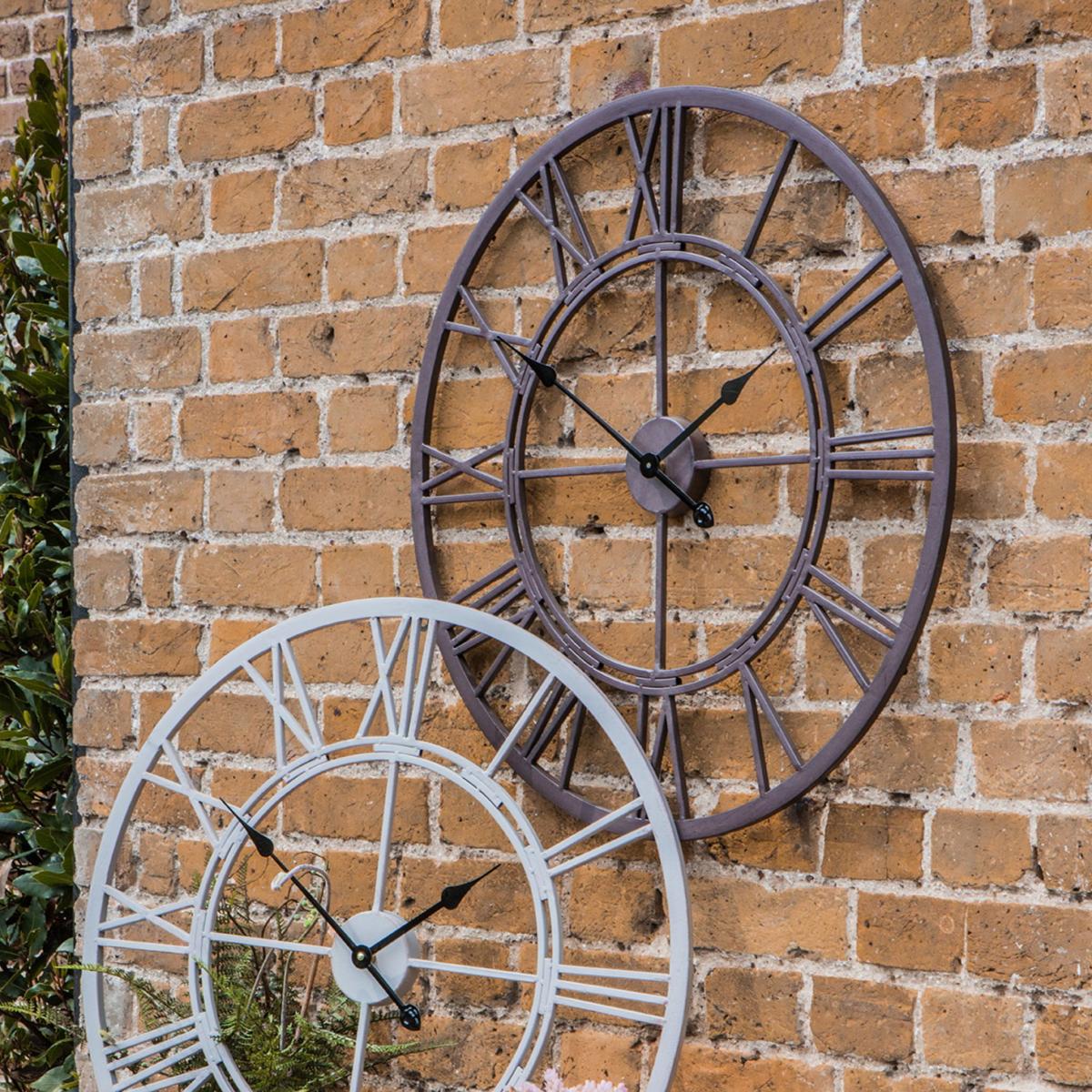 I love this outdoor clock for its bold, industrial design and open-frame style, which makes it a striking statement piece on any wall. It works particularly well in rustic, contemporary, or modern garden settings, adding a functional yet decorative touch. When styling, consider pairing it with other metal or natural materials like wood and stone to create a cohesive look. Practical tips include placing it at eye level for easy time-telling and ensuring it's protected from direct weather exposure if not specifically made for all outdoor conditions. Its open design also means it won’t feel bulky, helping to keep your outdoor space looking bright and open.