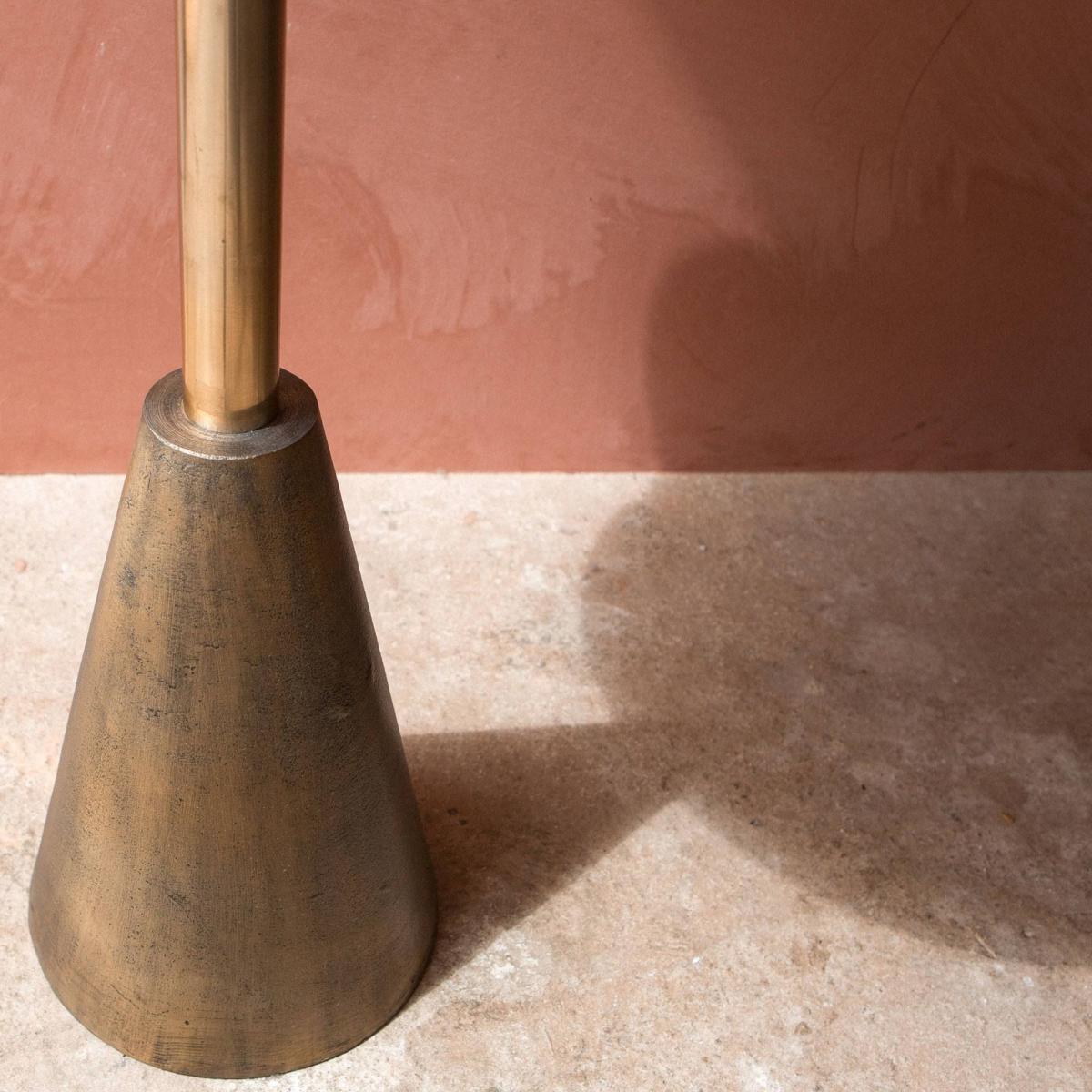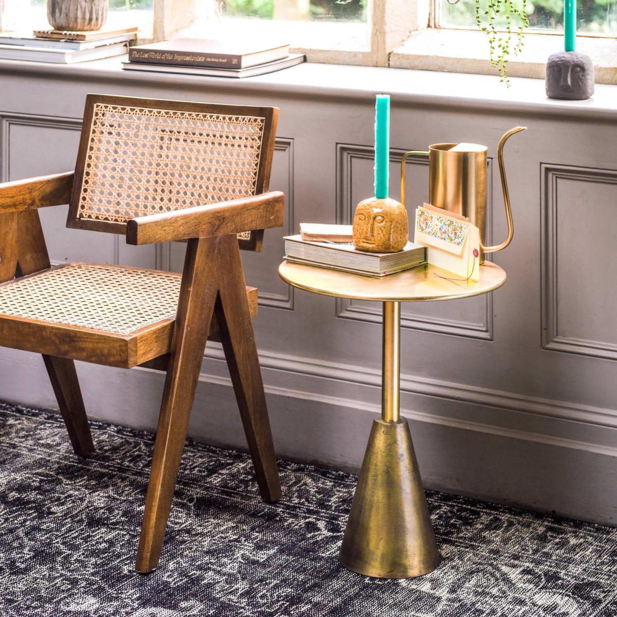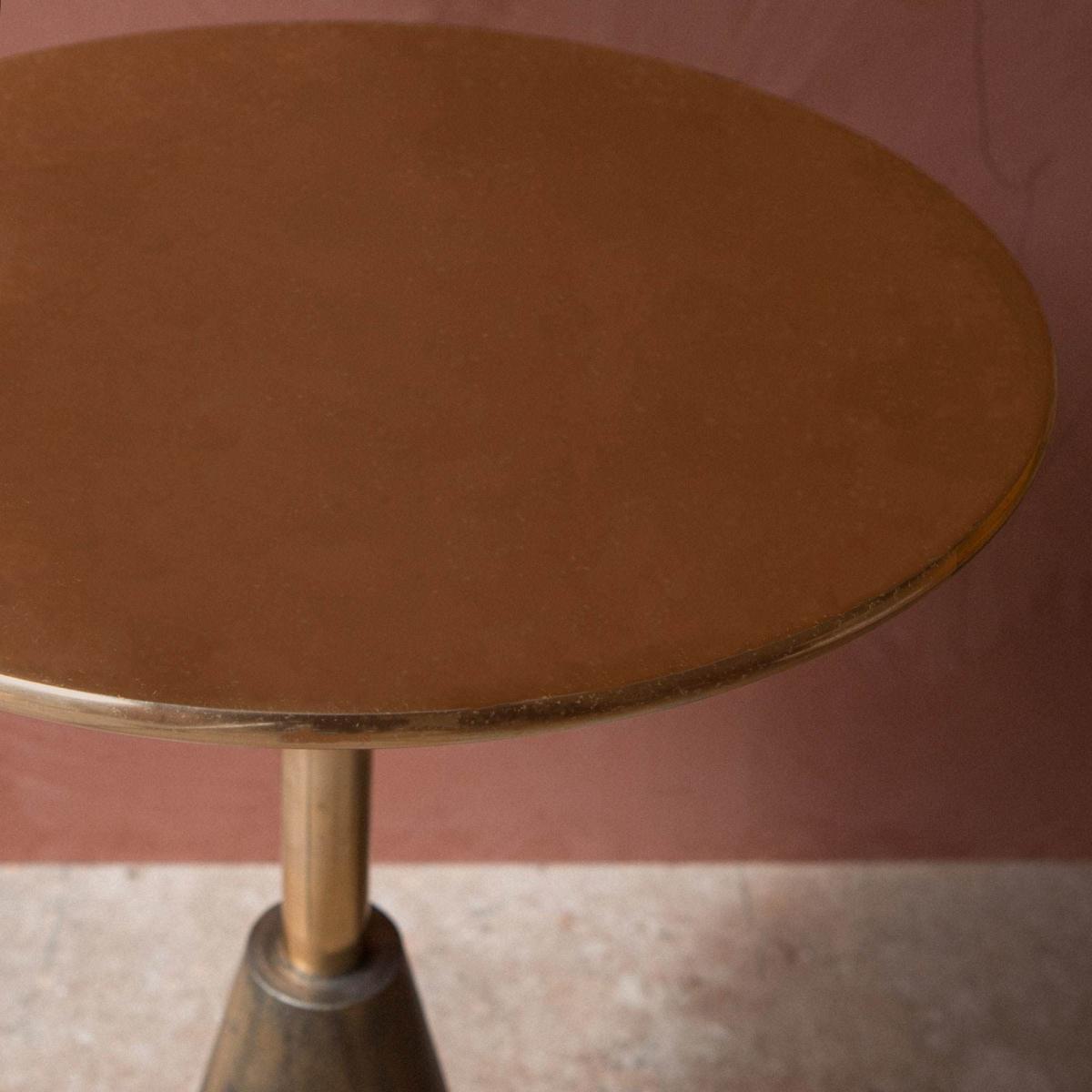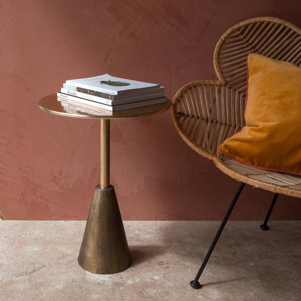 Handmade in India by talented artisans, our Luko side table is crafted from aluminium with a shiny brass finish. Featuring a smooth, circular tabletop, a sleek stand and an antiqued bronze base, this stylish side table brings a stylish, industrial vibe.