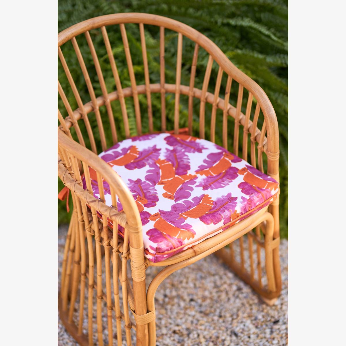I love this seat cushion for its vibrant, playful print that can instantly lift both vintage and contemporary interiors. It works particularly well in relaxed, coastal, or bohemian spaces where a pop of colour and pattern can add character. Practical styling tips include layering it on rattan or wooden chairs to bring a casual yet chic vibe, or mixing it with other textiles for an eclectic look. Its compact size makes it versatile for outdoor dining areas or sunrooms, offering both comfort and a dash of personality. Overall, it's a simple way to refresh seating without a full reupholster, adding colour and comfort effortlessly.