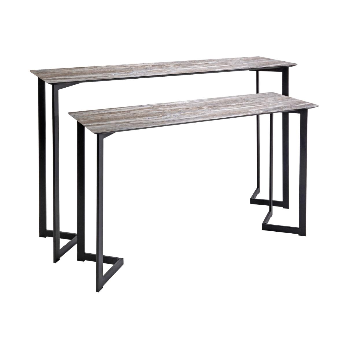 Lulani set of nested console tables, featuring matte black frames and stone veneer tops. This sleek set features two tables with brown stone veneer tops and matt black frames, offering a stylish solution for tight spaces. The larger table measures 120cm wide, while its compact companion sits at 100cm, allowing you to nest them together or use them separately for maximum versatility. Perfect for displaying decorative objects or providing a handy surface for keys and post, this console table set combines form and function beautifully. Assembly is a breeze, and with proper care-avoiding hot items and wiping spills promptly-these tables will remain a stunning addition to your home for years to come. Lulani set of nested console tables, featuring matte black frames and stone veneer tops. This sleek set features two tables with brown stone veneer tops and matt black frames, offering a stylish solution for tight spaces. The larger table measures 120cm wide, while its compact companion sits at 100cm, allowing you to nest them together or use them separately for maximum versatility. Perfect for displaying decorative objects or providing a handy surface for keys and post, this console table set combines form and function beautifully. Assembly is a breeze, and with proper care-avoiding hot items and wiping spills promptly-these tables will remain a stunning addition to your home for years to come.