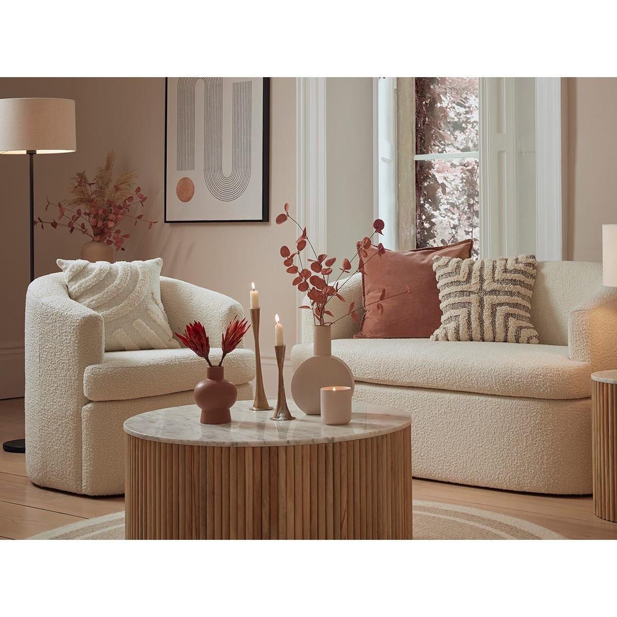 Glamorous curves, a wide choice of fabrics from bouclé to black leather and solid English craftsmanship make our Lulea the most desirable of curved furniture collections. The club style armchair has a solid divan base and a low back that curves seamlessly into the tapered arms. This chair is perfect for smaller sophisticated living rooms or as a standalone piece in any elegant home. The Lulea range also includes a two seater and an ottoman. Our Lulea collection can be upholstered in a choice of 34 distinctive shades and six fabrics to suit your style. Read our Upholstery FAQs View our full Upholstery Terms and Conditions