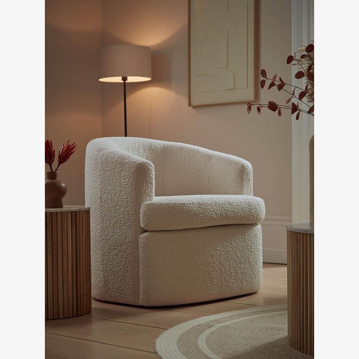 Glamorous curves, a wide choice of fabrics from bouclé to black leather and solid English craftsmanship make our Lulea the most desirable of curved furniture collections. The club style armchair has a solid divan base and a low back that curves seamlessly into the tapered arms. This chair is perfect for smaller sophisticated living rooms or as a standalone piece in any elegant home. The Lulea range also includes a two seater and an ottoman. Our Lulea collection can be upholstered in a choice of 34 distinctive shades and six fabrics to suit your style. Read our Upholstery FAQs View our full Upholstery Terms and Conditions