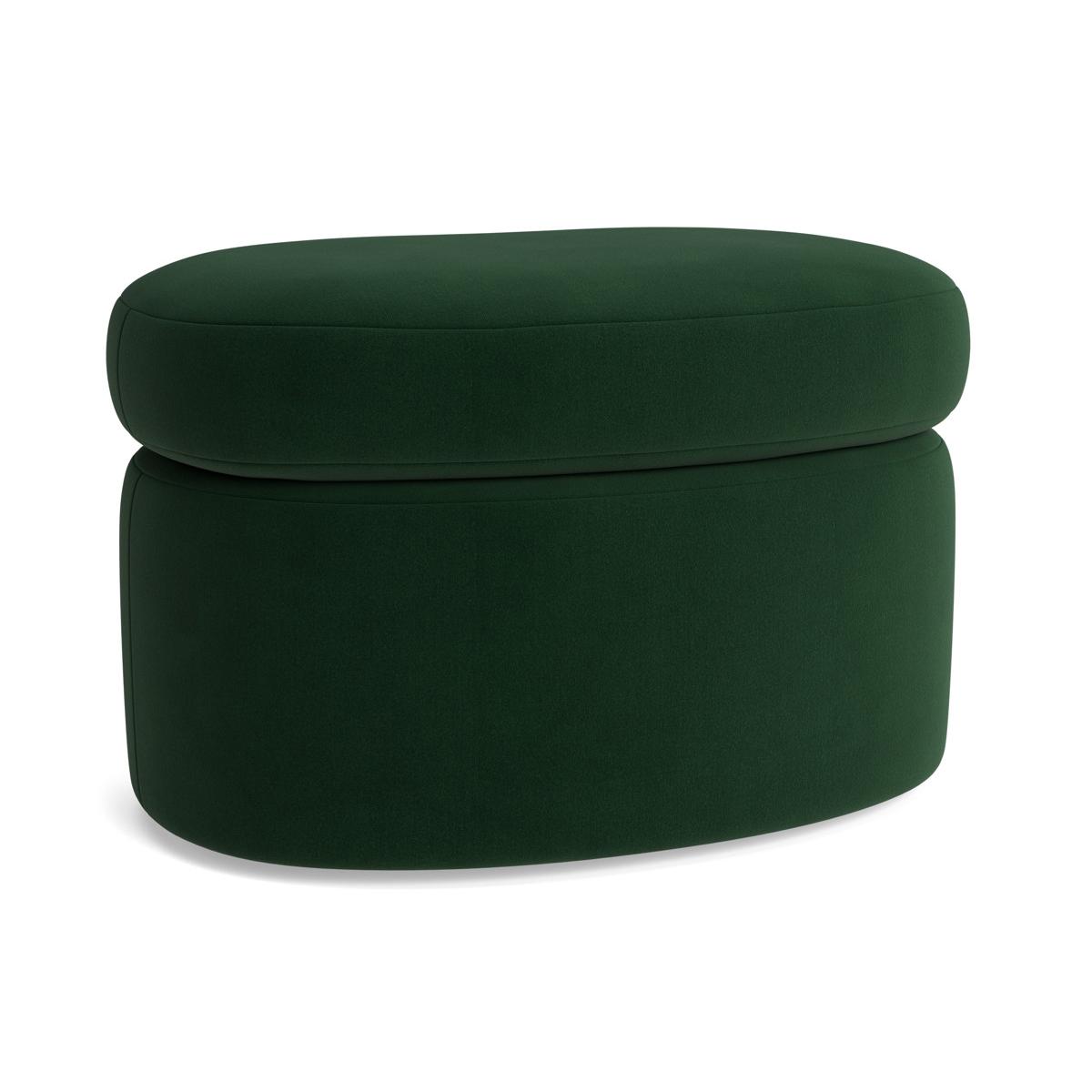 Glamorous curves, a wide choice of fabrics from bouclé to black leather and solid English craftsmanship make our Lulea the most desirable of curved furniture collections. The lozenge shaped ottoman perfectly echoes the elegant lines of both the two seater sofa and the armchair from our bespoke Lulea living room furniture range. Complete your living space with this versatile piece that can be used as a footrest, pouffe or even a hand spot to rest a tray. The Lulea range also includes a two seater sofa and an armchair. Pictured here in our Forest Green velvet material, our Lulea collection can be upholstered in a choice of 34 distinctive shades and six fabrics to suit your style. Read our Upholstery FAQs View our full Upholstery Terms and Conditions