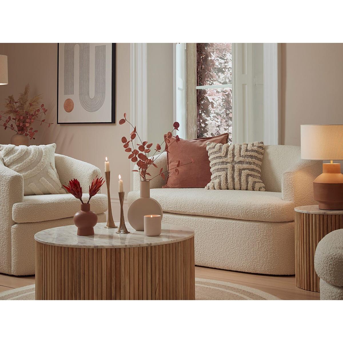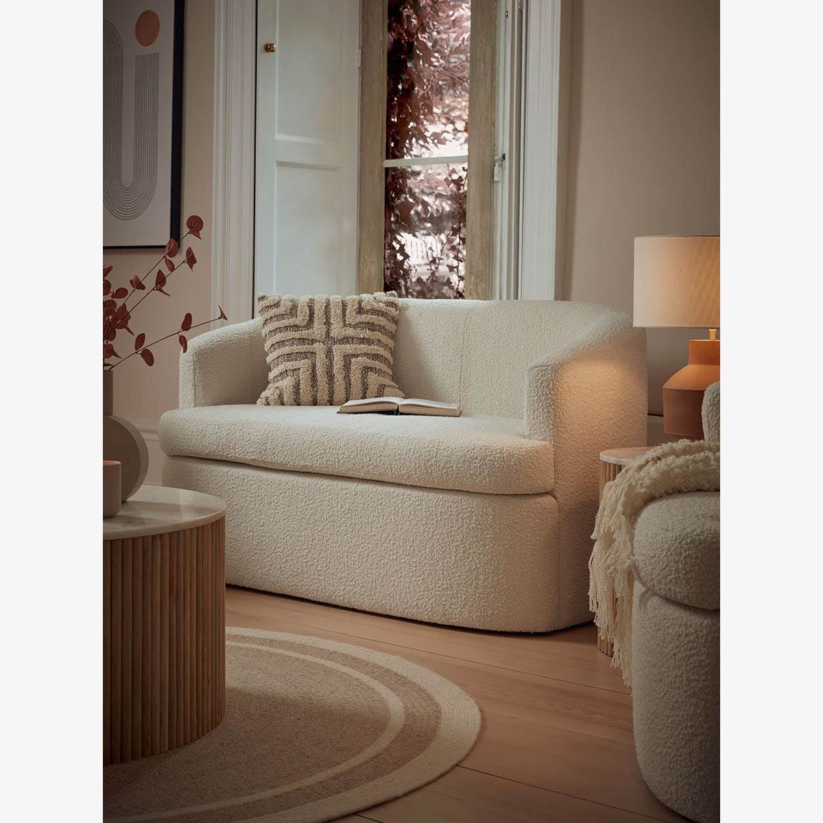 Glamorous curves, a wide choice of fabrics from bouclé to black leather and solid English craftsmanship make our Lulea the most desirable of curved furniture collections. With a solid divan style base and a low back that curves seamlessly into the tapered arms, our Lulea two seater sofa is perfect for smaller sophisticated living rooms or as a standalone piece in any elegant home. The single seat cushion provides an unbroken line for a clean cut silhouette, while feather and foam fill ensures a decadently comfortable perch. The Lulea range also includes an armchair and an ottoman. Our Lulea collection can be upholstered in a choice of 34 distinctive shades and six fabrics to suit your style. Read our Upholstery FAQs View our full Upholstery Terms and Conditions