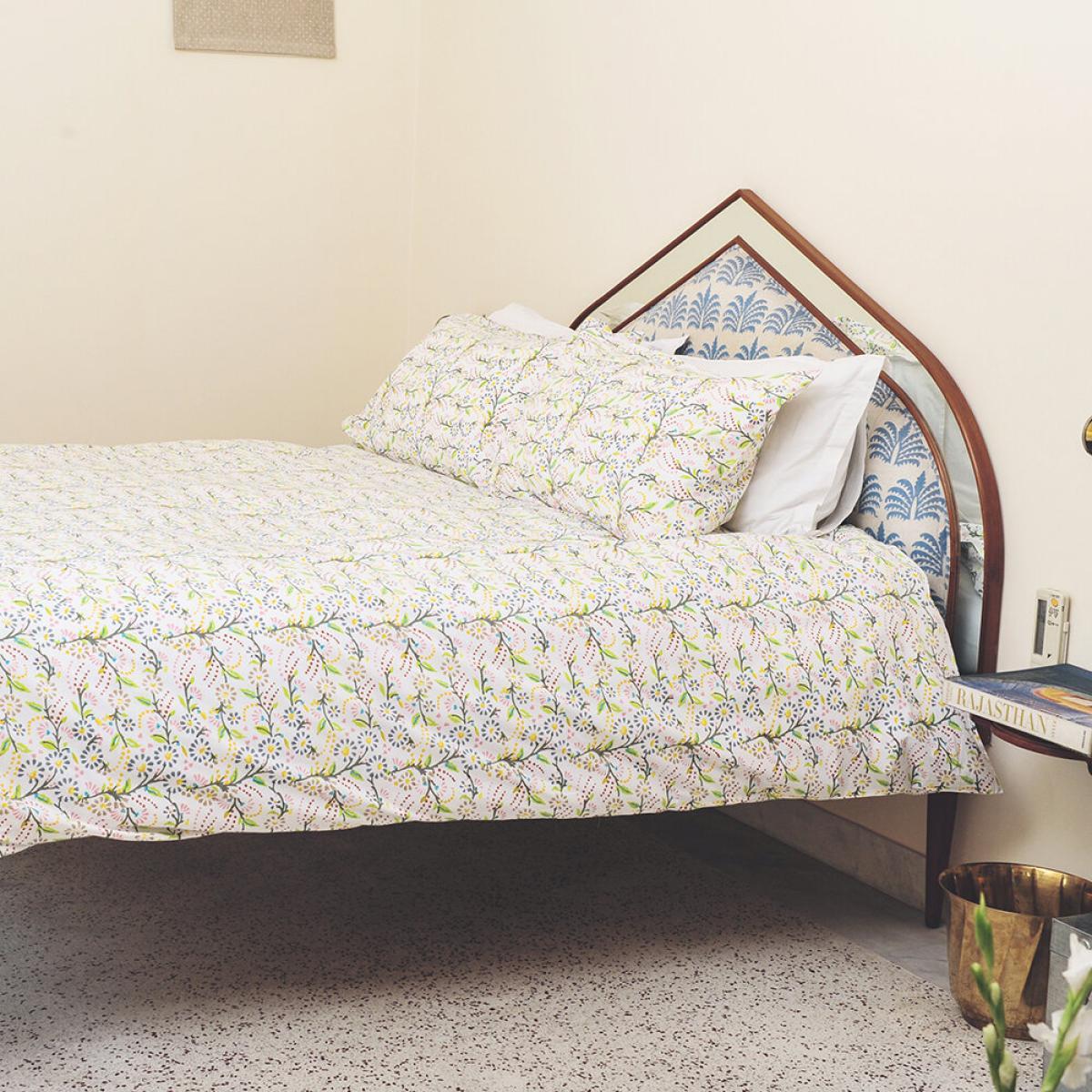 Bring Indian inspired florals to the bedroom with this bedding set from Lulu & Nat. Crafted from super soft percale cotton, it features a screen printed floral design in seven colours on a white background. Finished with hidden pearlescent button closings, it also comes with its own self printed cotton bag and is available in several sizes. Due to the hand printing process, Lulu & Nat advise that variations and imperfections may occur in the pattern.