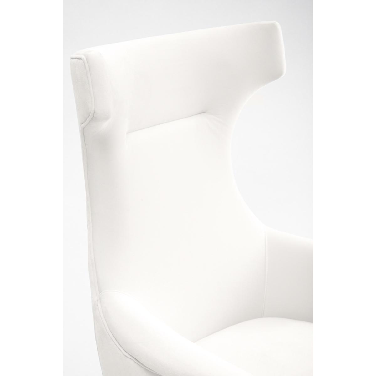 A unique statement chair with a striking sculptural silhouette. Inspired by rare 1960’s collectables. High back design with comfortable headrest and armrests. Very comfortable seat with deep foam and sprung base. Brushed brass drumstick legs. Velvet upholstery fabric. Minimal assembly is required.