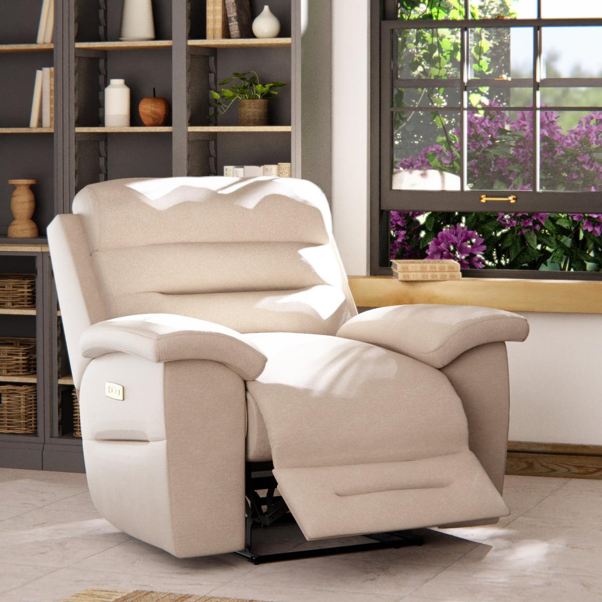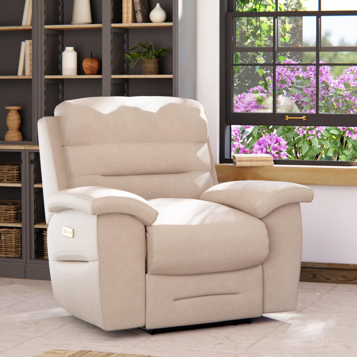 This armchair features soft and durable fabric, fixed cushions, high back cushions with soft padding, and arm pads for added comfort. Tufted detailing on the back cushions and footboard adds an elegant touch to your decor, making it a standout piece in any room. With powered controls with USB charging inputs at your fingertips, you can easily find your preferred reclining position, allowing you to unwind in comfort and style.