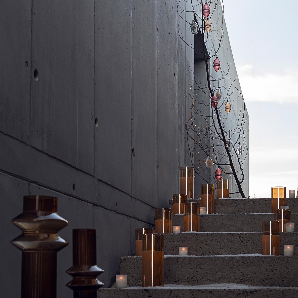 The Luma LED candle offers dancing and romantic light with its rounded shape and iridescent glass. Product Details • LED light • Wax and iridescent effect glass • On/off button • Works with batteries (2x LR6 AA 1.5. V) not included • Use: approx. 200h. Dimensions • Diameter: 10cm • Height: 20cm Parcel dimensions and weight1 parcel • L25.5 x H15.7 x D15.3cm, 0.55kg