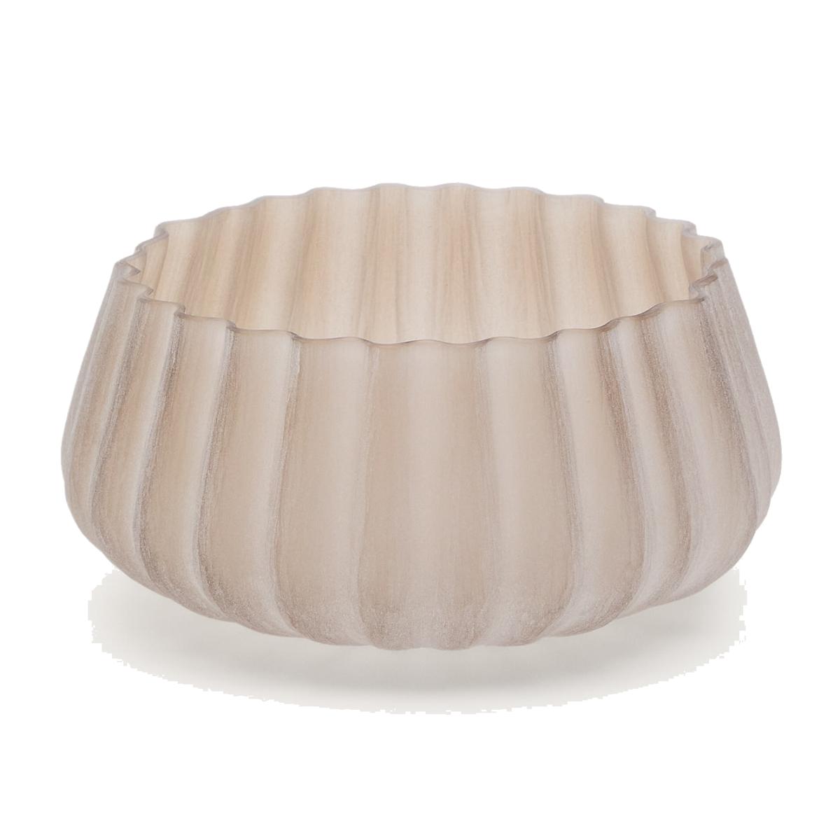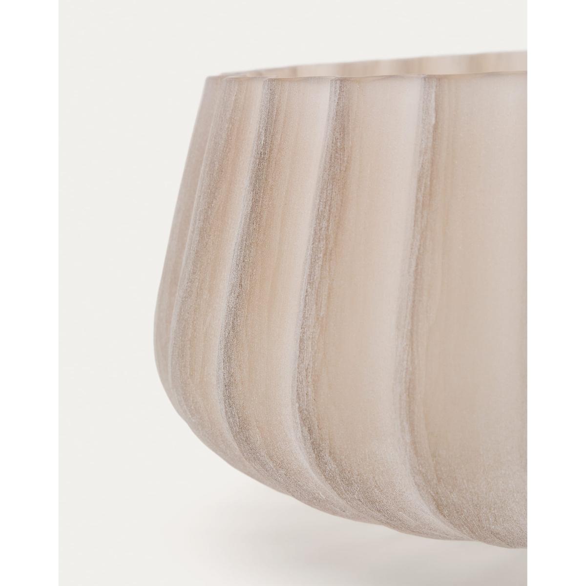 This glass vase stands out for its subtly marked vertical lines, which evoke elegance and symmetry. Its smoky beige hue and elongated shape make it a refined piece, perfect for sophisticated and warm environments.