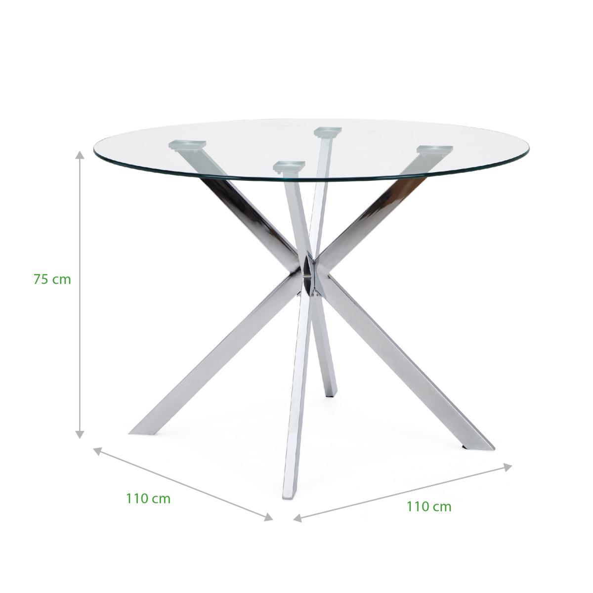 I love the clean, minimalist appeal of this round glass table, making it incredibly versatile for a variety of interiors-from modern and contemporary to sleek urban spaces. Its transparent top helps to create a sense of openness, especially in smaller rooms or open-plan layouts. The chrome legs add a touch of sophistication while remaining neutral enough to pair with different chair styles and colour schemes. For styling, consider adding a simple centrepiece such as a modern vase or a small stack of decorative books for visual interest. Practical tips include pairing it with upholstered or metal chairs for contrast, and balancing the table’s sleekness with textured or colourful accessories for warmth and personality. This piece works well in both casual family dining areas and more polished, formal spaces.