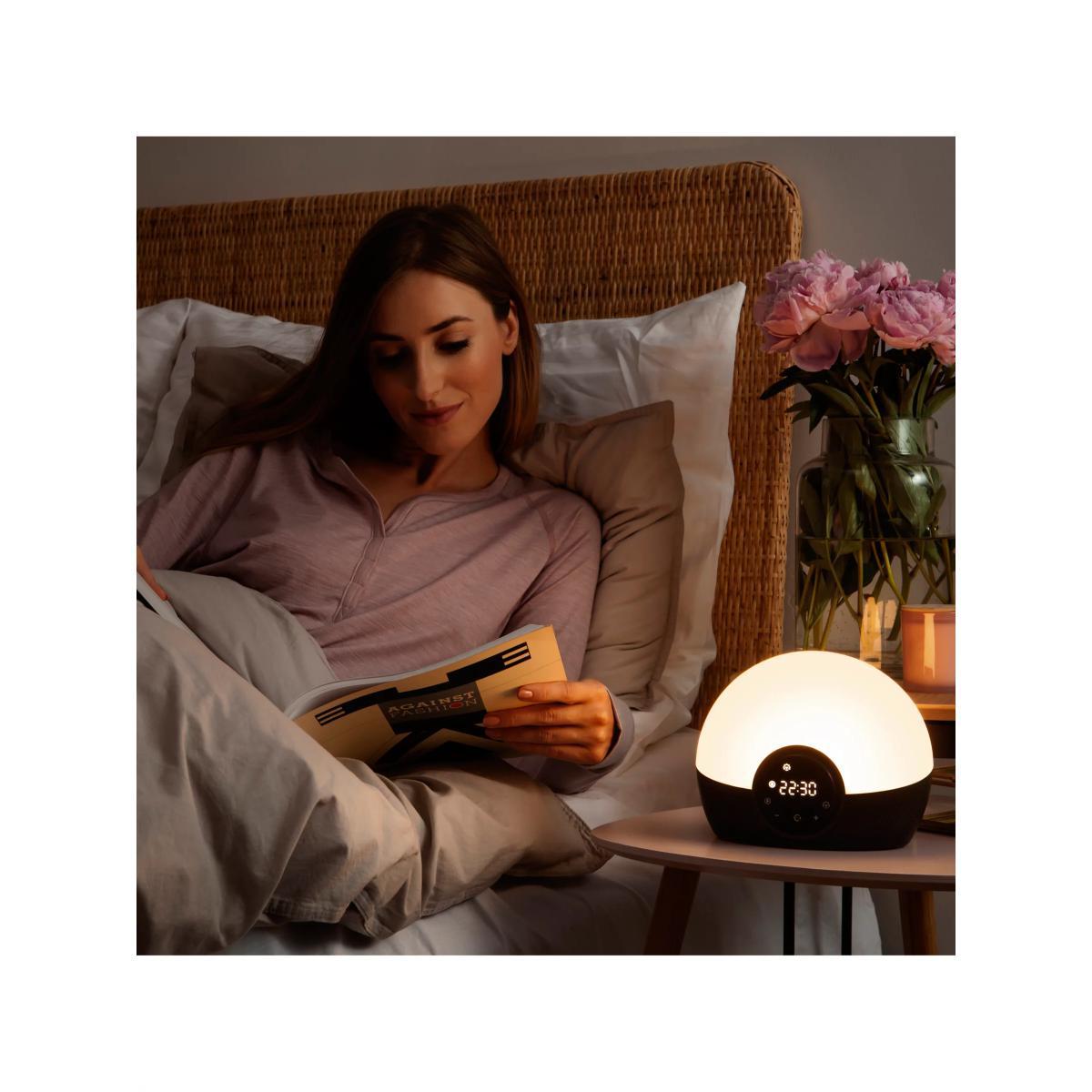 Quiet Mark awarded product Light at the start of the day is the most effective way to reset your internal clock and the daily cycle of hormones, metabolism and sleep. The Bodyclock Glow 150 from Lumie is a Class 1 graded medical device that will introduce you to the benefits of sleeping and waking with light, so that you can experience a more regular sleep and wake pattern. Wake up bright Bodyclock Glow 150 wakes you naturally at the alarm time when the light is at its brightest. Set your preferred final light intensity and wake up to a warm glow or a bright, sunny room. Choose from one of the wake-up sounds if you'd like an extra alarm. Waking up with gradual light has been proven to boost mood, productivity and energy levels, so that you feel brighter and ready for the day ahead. Unwind naturally Wind down gradually with a sunset feature lasting 20, 30 or 45 minutes. Fading light is a signal for the body to produce melatonin ready for sleep, so the sunset makes you naturally drowsy. Realistic lighting fades through pink, orange, red then turns off or stays at a soft glow if you set the nightlight feature. Combat Seasonal Affective Disorder This product is recommended for SAD and winter blues sufferers as it helps to regulate your sleep and wake cycles and is a great complement to bright light therapy. Key features include: Light that mimics the colours of a real sunrise or sunset for 20, 30 or 45 minutes Nine wake up and sleep sounds, including white noise Adjustable sunrise light intensity Nightlight and a fully dimmable bedside light Light-sensitive auto-dimming display Quiet Mark Plus, with the Quiet Mark stamp of approval, this appliance will work discreetly without disrupting the tranquillity of your home.
