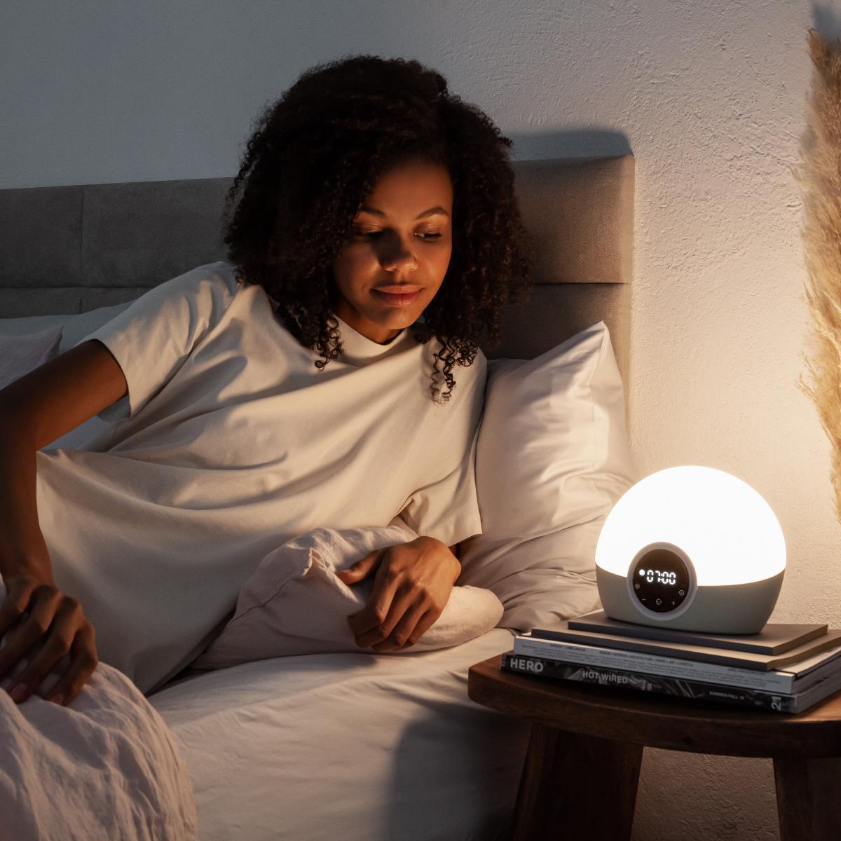 * Wake refreshed and energised – gradual sunrise and sunset lighting* Simple and user friendly* Compact and ergonomic design* Tap-snooze control* Light-sensitive auto-dimming display* Nightlight option* Power failure backup* Mixed LE Ds – warm white, orange and red You can now wake up refreshed and revitalised. The Lumie Bodyclock Spark 100 alarm clock replicates the light and colour of a real sunrise, ensuring that when you wake up, you feel properly awake and refreshed. By regulating your sleep-wake cycle, it has been shown to enhance mood, energy, and productivity levels for the rest of the day. With a clean look and straightforward programming, the Spark 100 is an excellent choice for those new to light therapy. It features a 30-minute gradual sunrise and sunset, along with popular customisations such as the ability to choose the final light intensity for the sunrise and a nightlight option for a gentle light throughout the night, particularly suitable for kids. This clock provides fully adjustable bedroom lighting, offering both a bright light for reading and a relaxing soft glow. As your room gets darker, the light-sensitive display automatically switches off, assisting you in achieving a peaceful environment conducive to sleep. The tap-control snooze feature adds convenience to your waking routine. Designed to mimic the colours of a real sunrise and sunset, this clock creates an immersive experience that simulates the natural transitions of light and colour. This helps synchronise your body's internal clock and promotes a sense of harmony with your environment. It is also highly portable and easy to place in any room or carry while travelling.