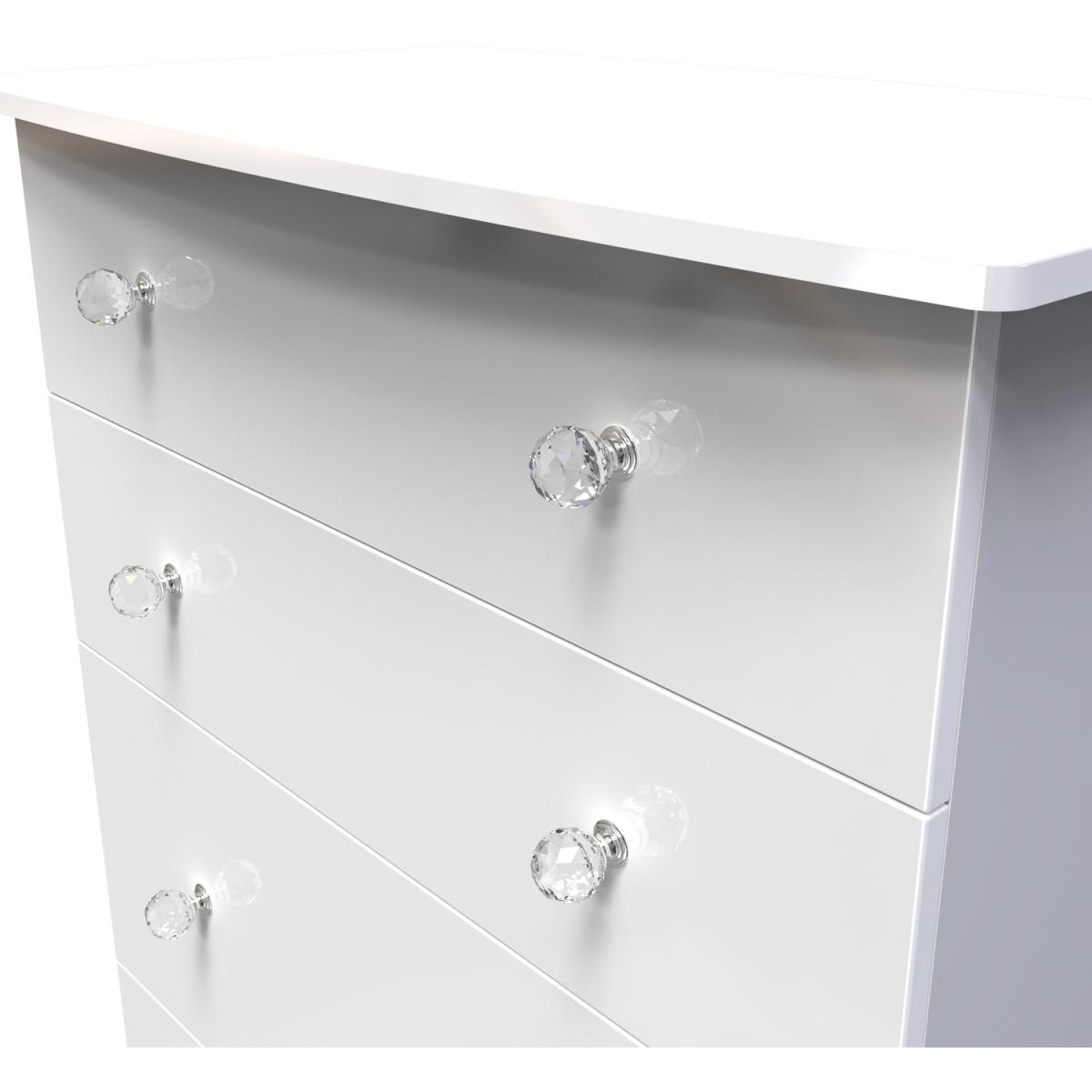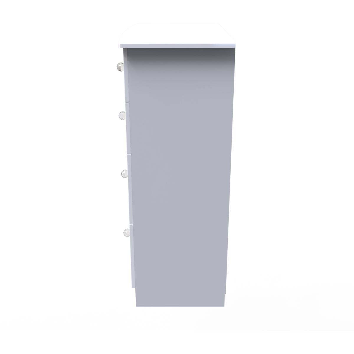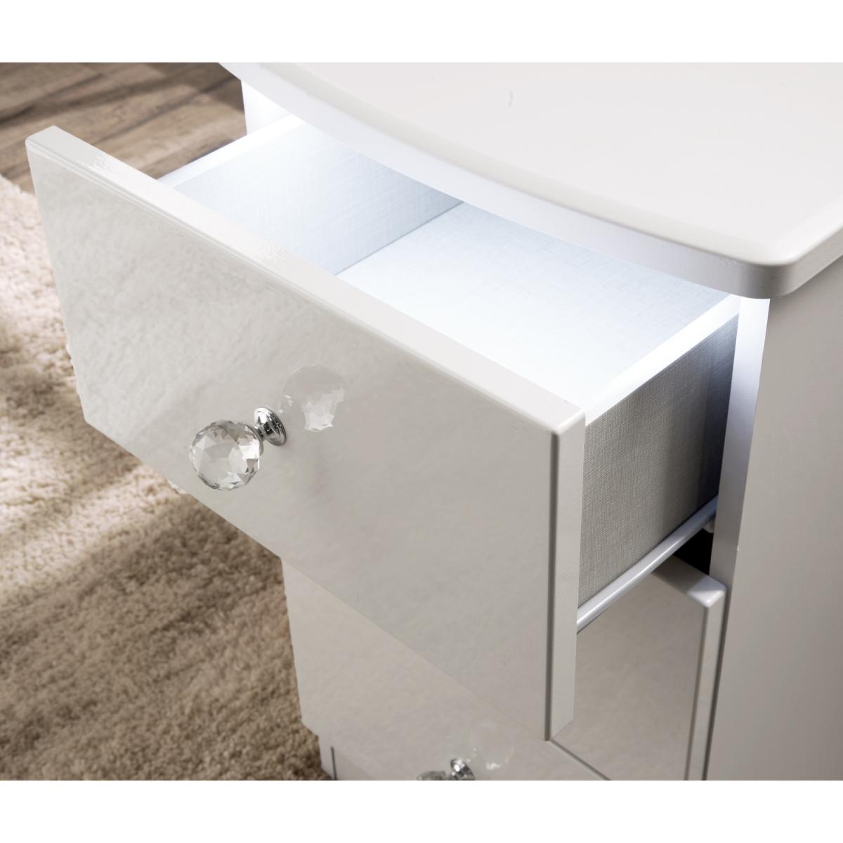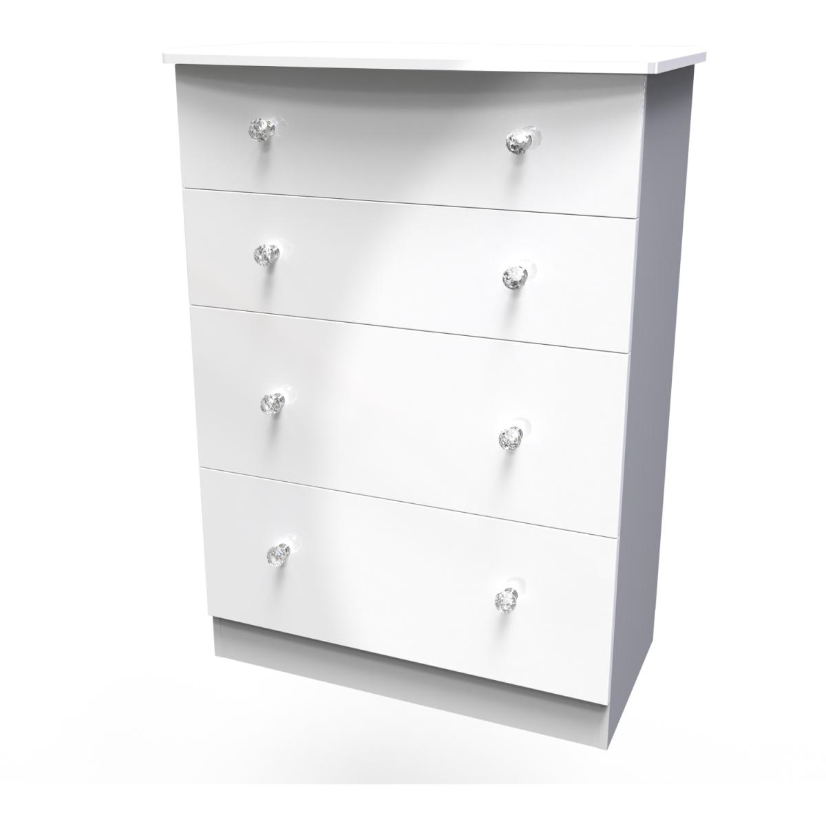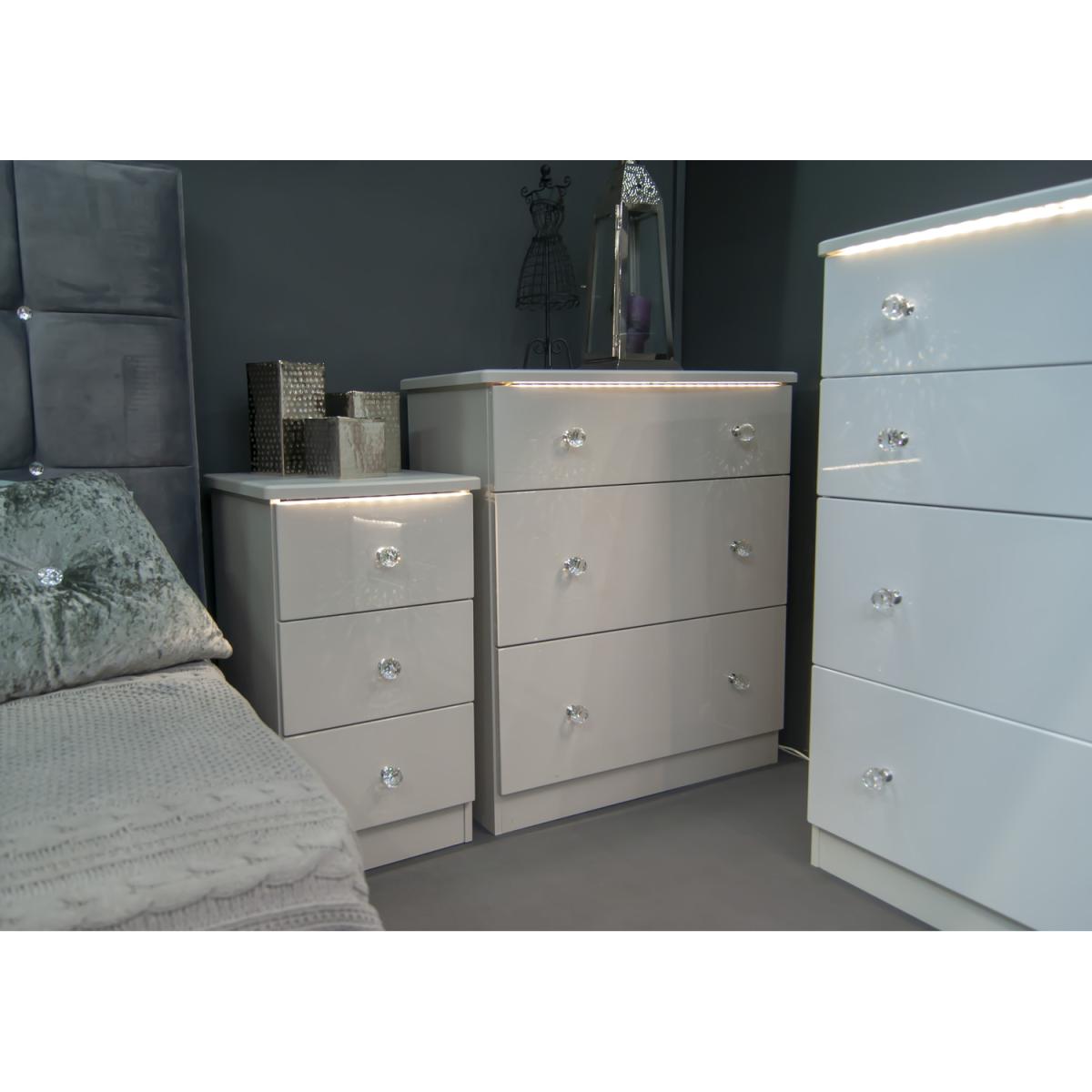 This deep 4 drawer chest of drawers is practical and stylish. Perfect for any home as a free standing storage unit. Light up your bedroom with the shiny style of the stunning Lumiere collection. A dazzling range of ready-assembled bedroom furniture featuring white or grey matt bodies and gloss finish doorsdrawer fronts. With built-in lighting which illuminates the contents making everything much easier to find, even in the dark. All our furniture is made in the United Kingdom, to the highest quality. It is delivered direct to your location of choice by one of our two man delivery teams, and come full assembled (although legs may be removed to prevent damage in transit).