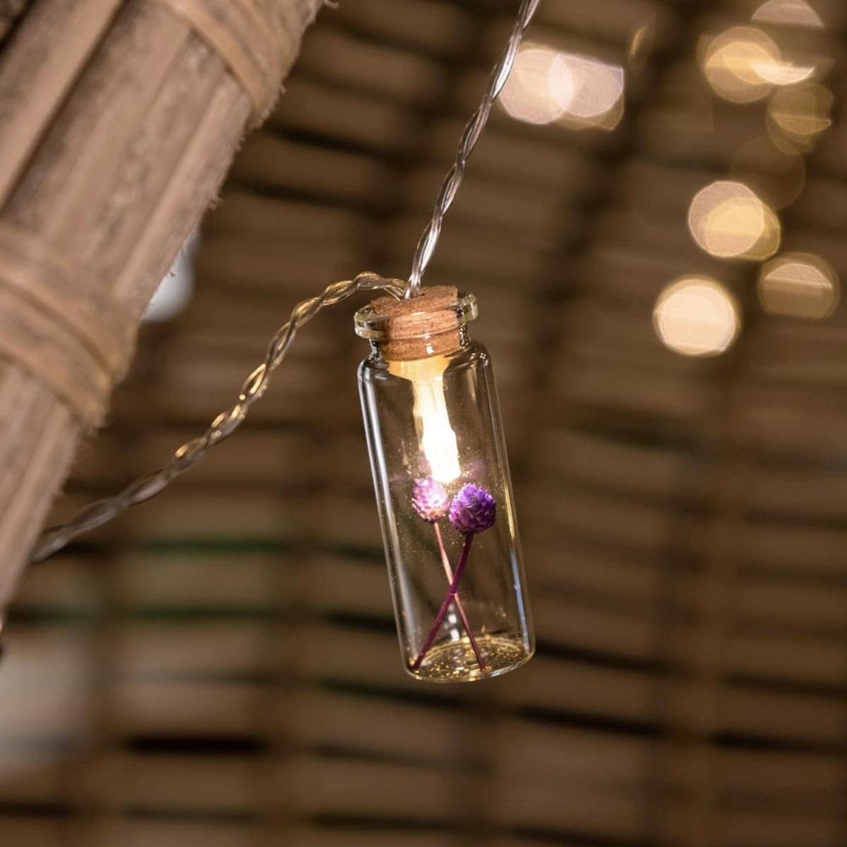 Add festoon lighting anywhere outside quickly and easily with our premium-grade Lumify USB Solar Flower Jar Lights. Each set has 20 flower jars that each contain a warm white LED and two dried flowers. The jars are spaced 25cm apart along a 4.6m string with an additional 1.9m between the control tube and the first jar. Lumify uses our latest high-efficiency circuit design backed up with enhanced USB charging and our new Powersaving technology to guarantee unrivalled performance night after night, year after year.
