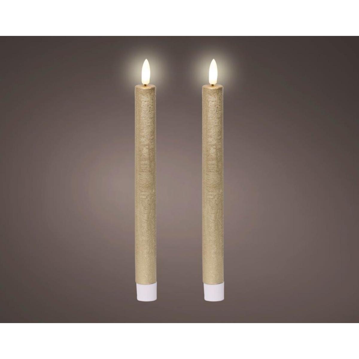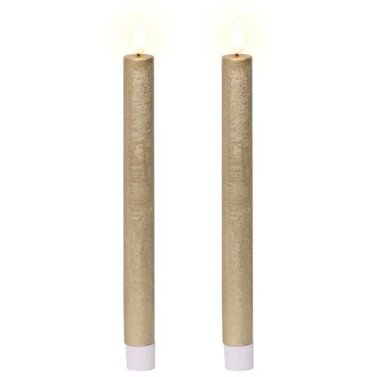 Lumineo LED Twin Pack Dinner Candle 24.5cm - Gold