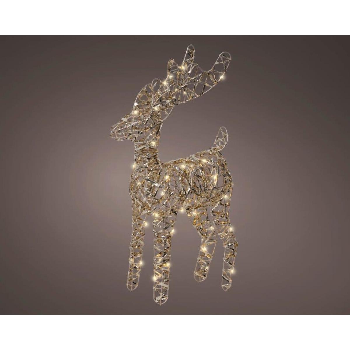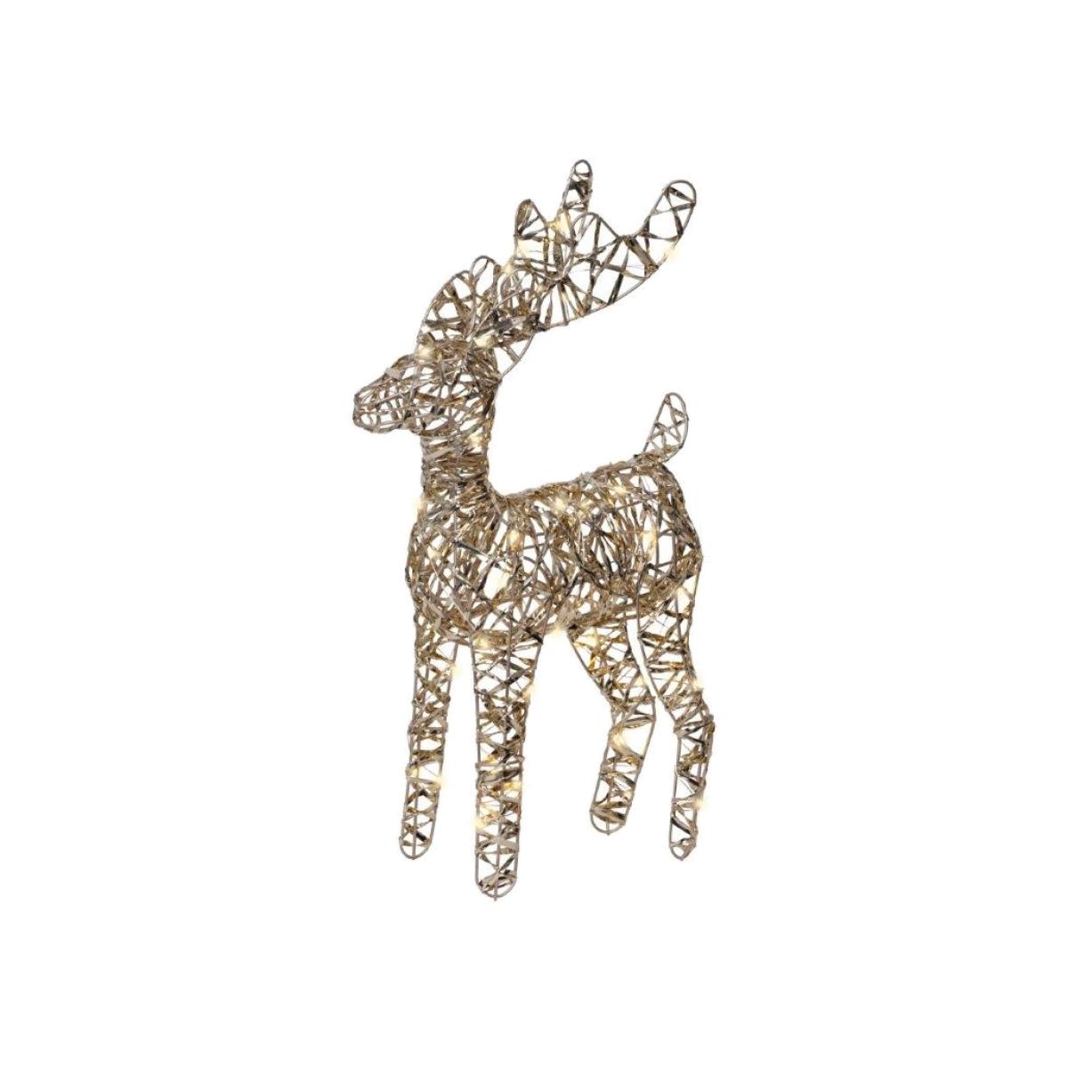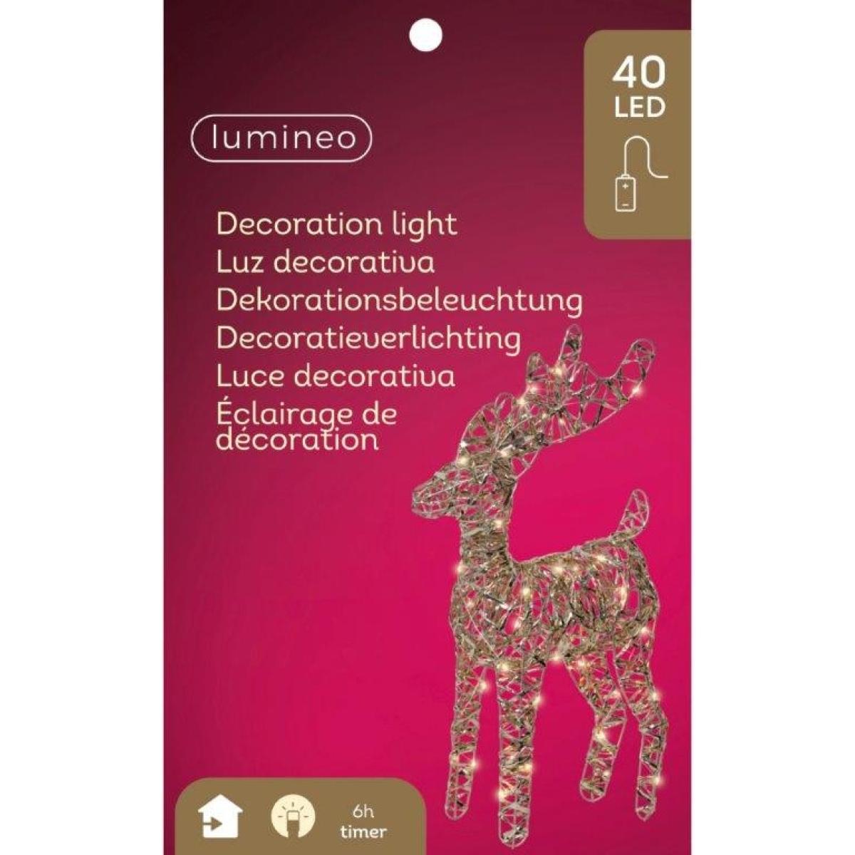 Add a graceful and festive touch to your home with the Lumineo Micro LED Reindeer – Gold. Standing 37cm tall with a base measuring L 9 × W 25cm, this elegant indoor decoration features a radiant gold finish and warm white micro-LEDs that emit a soft, inviting glow. Key Features: Height: 37cm | Base dimensions: L 9 × W 25cm Warm white micro-LED lights for a cosy, ambient glow Battery operated: Requires 3 × AA batteries (not included) Elegant gold design for a festive and sophisticated look Ideal for mantels, shelves, or tabletop displays Why You’ll Love It: Perfect for holiday décor or winter-themed arrangements, this micro LED reindeer brings seasonal charm and elegance to any indoor setting. Its gentle illumination and sleek design make it a standout piece, creating a cosy and inviting festive ambience.