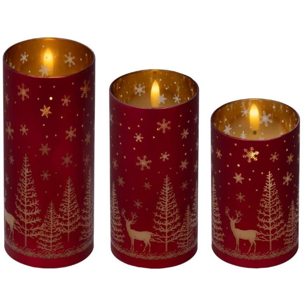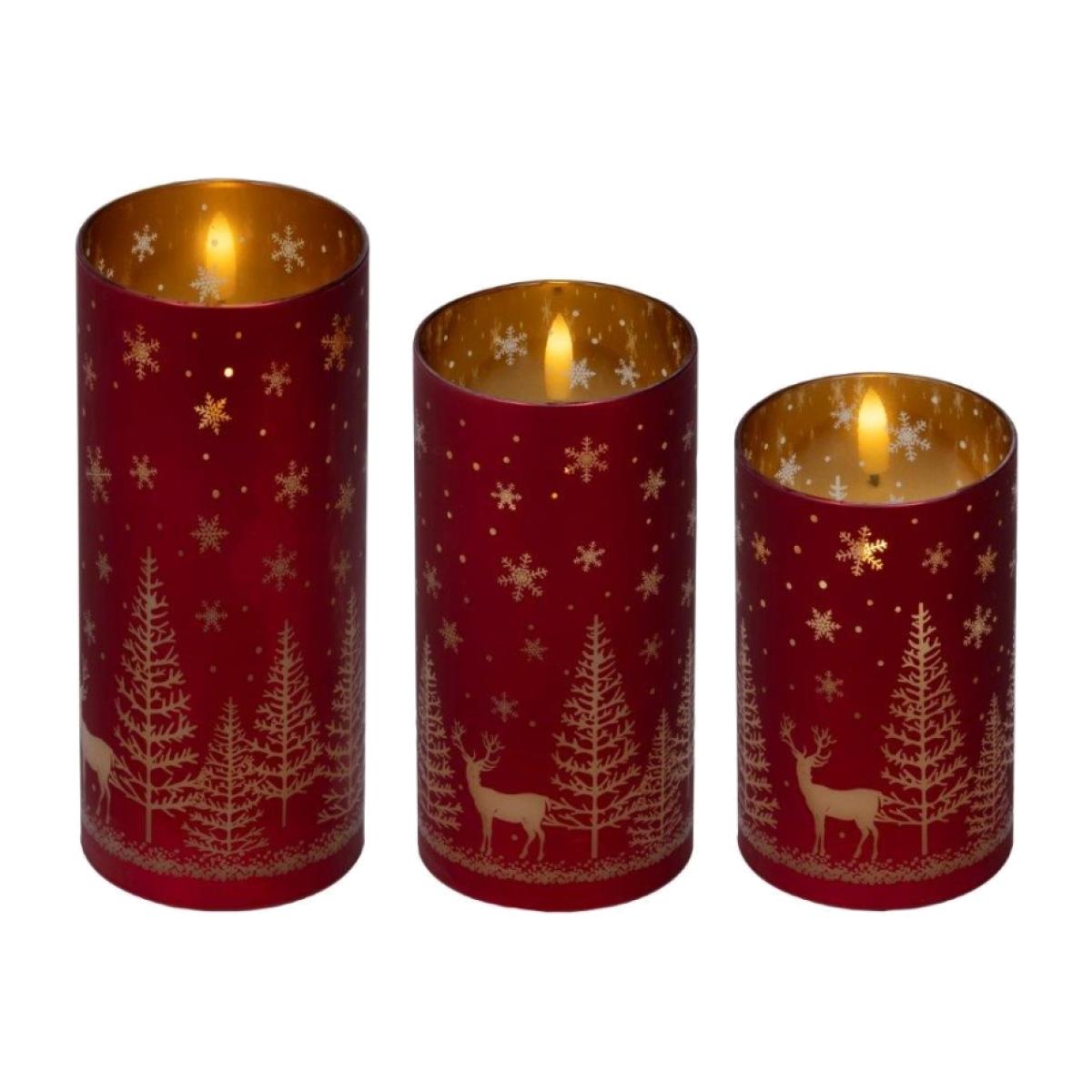 Add a bold and festive touch to your home with the Lumineo Set of 3 LED Candles – Red. Finished in a rich red hue, these elegant LED candles feature a realistic warm white flame that gently flickers, creating a cosy and inviting atmosphere without the risk of open flames. Key Features: Set of 3 LED candles in vibrant red Realistic warm white LED flame with gentle flicker Battery operated: Requires 3 × AA batteries per candle (not included) Safe and flameless for worry-free use Ideal for festive décor, romantic settings, or everyday ambience Why You’ll Love It: Whether displayed individually or as part of a decorative arrangement, these LED candles bring warmth, colour, and style to any room. Perfect for mantels, tabletops, or seasonal displays, they combine elegance and safety to enhance your home décor all year round.