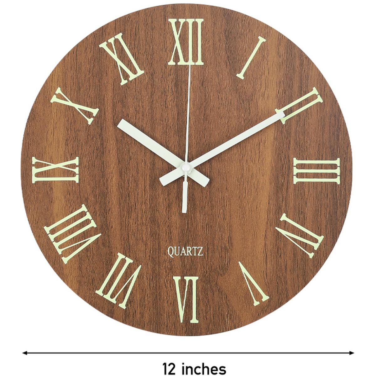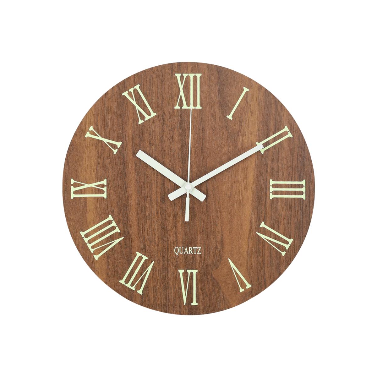Luminous Non-Ticking Wooden Design Wall Clock - Brown