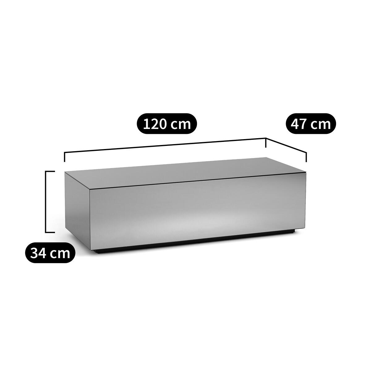 The Lumir mirrored coffee table will give your interior a nice boost. Its mirrored finish reflects the light and creates the impression of spaciousness. Product Details • MDF structure covered with mirrors • MDF from FSC® certified wood. Dimensions • Width: 120cm • Height: 34cm • Depth: 47cm. Delivery: • Sold pre-assembled. It will be delivered to your door. Note! Please check that all access points are large enough to accommodate your delivery (doors, stairs, lifts). • WOOD FROM SUSTAINABLY MANAGED FORESTS. FSC® certified wood comes from forests that are environmentally, socially and economically well managed. Parcel dimensions and weight1 parcel • L132 x H46 x D59cm. 37kg