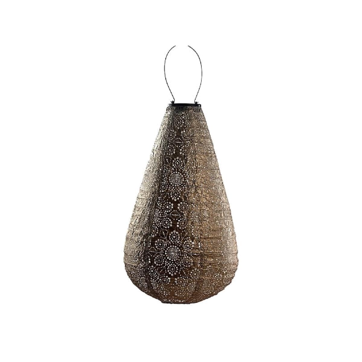 The LUMIZ Drop Solar Lantern - 28cm- Fiore - Gold, inspired by light, atmosphere and Dutch design, made from durable and weather-resistant Tyvek material, is a unique appearance in your garden. When dusk activates the light from the LUMIZ, the design miraculously comes to life and the enchanting shadow pattern awakens year round. Features: Made from weatherproof and colorfast Tyvek material so you can leave outside all year round Rechargeable AAA battery charges optimally in sunlight Built in on/off switch, automatically comes on when it gets dark Under optimal conditions the LUMIZ with illuminate for 6-8 hours with a charge time of 6-8 hours Can be used indoors once charged or used with normal AAA batteries The solar module is made in the same colour to mach the lantern. Available in a range of styles, colours and patterns