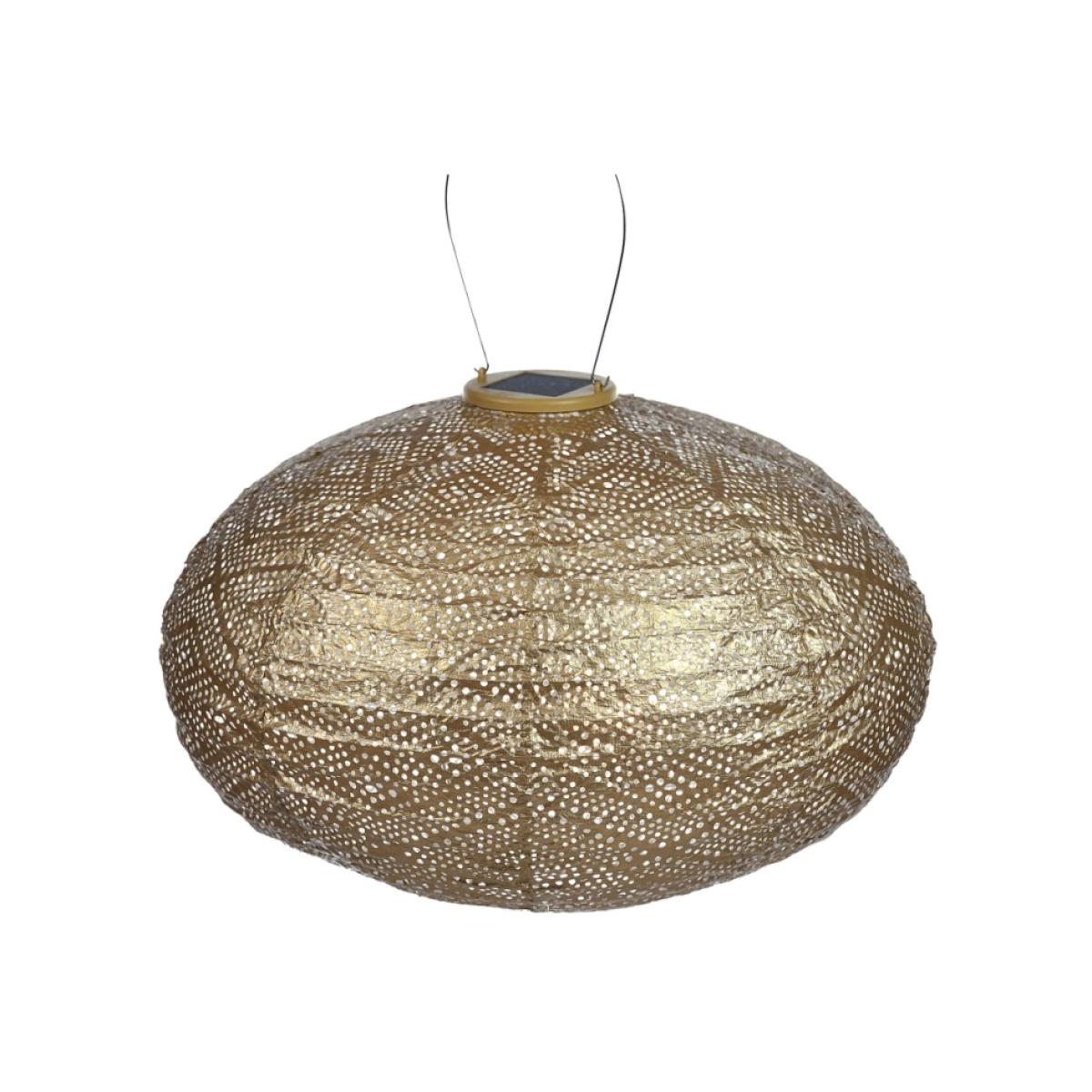 The LUMIZ Oval Solar Lantern - 40cm - Ikat - Gold, inspired by light, atmosphere and Dutch design, made from durable and weather-resistant Tyvek material, is a unique appearance in your garden. When dusk activates the light from the LUMIZ, the design miraculously comes to life and the enchanting shadow pattern awakens year round. Features: Made from weatherproof and colorfast Tyvek material so you can leave outside all year round Rechargeable AAA battery charges optimally in sunlight Built in on/off switch, automatically comes on when it gets dark Under optimal conditions the LUMIZ with illuminate for 6-8 hours with a charge time of 6-8 hours Can be used indoors once charged or used with normal AAA batteries The solar module is made in the same colour to mach the lantern. Available in a range of styles, colours and patterns