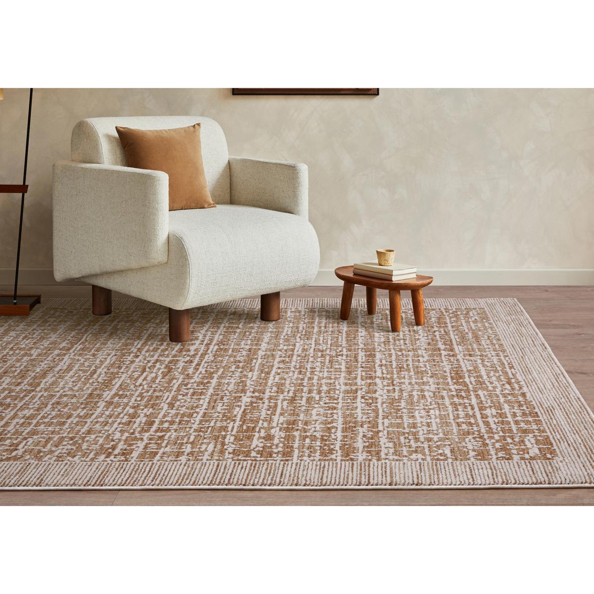 This rug’s striped border contains a pattern inspired by meticulous cross-hatching – and the effect is relaxed and cosy as well as stylish and modern. Machine-woven for durability. Why you'll love it Unique modern rug with a cross-hatching-effect design. On-trend bohemian charm. Natural-toned palette feels relaxing and brings warmth. Subtle shimmer effect adds a touch of contemporary luxury. Machine-woven from a blend of two yarns for lasting durability. Soft-textured, shallow pile is so cosy underfoot. In a choice of sizes and colourways. This rug is part of the Furniture Village home accessories collection. What you need to know 70% polyester, 30% polypropylene. Shallow pile. For indoor use only. Easy to clean – vacuum regularly using a suction cleaner. Blot stains; do not rub. Item code: LUMORUG4TERA-001