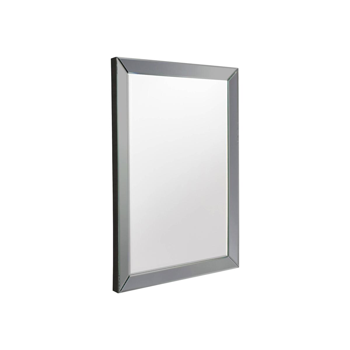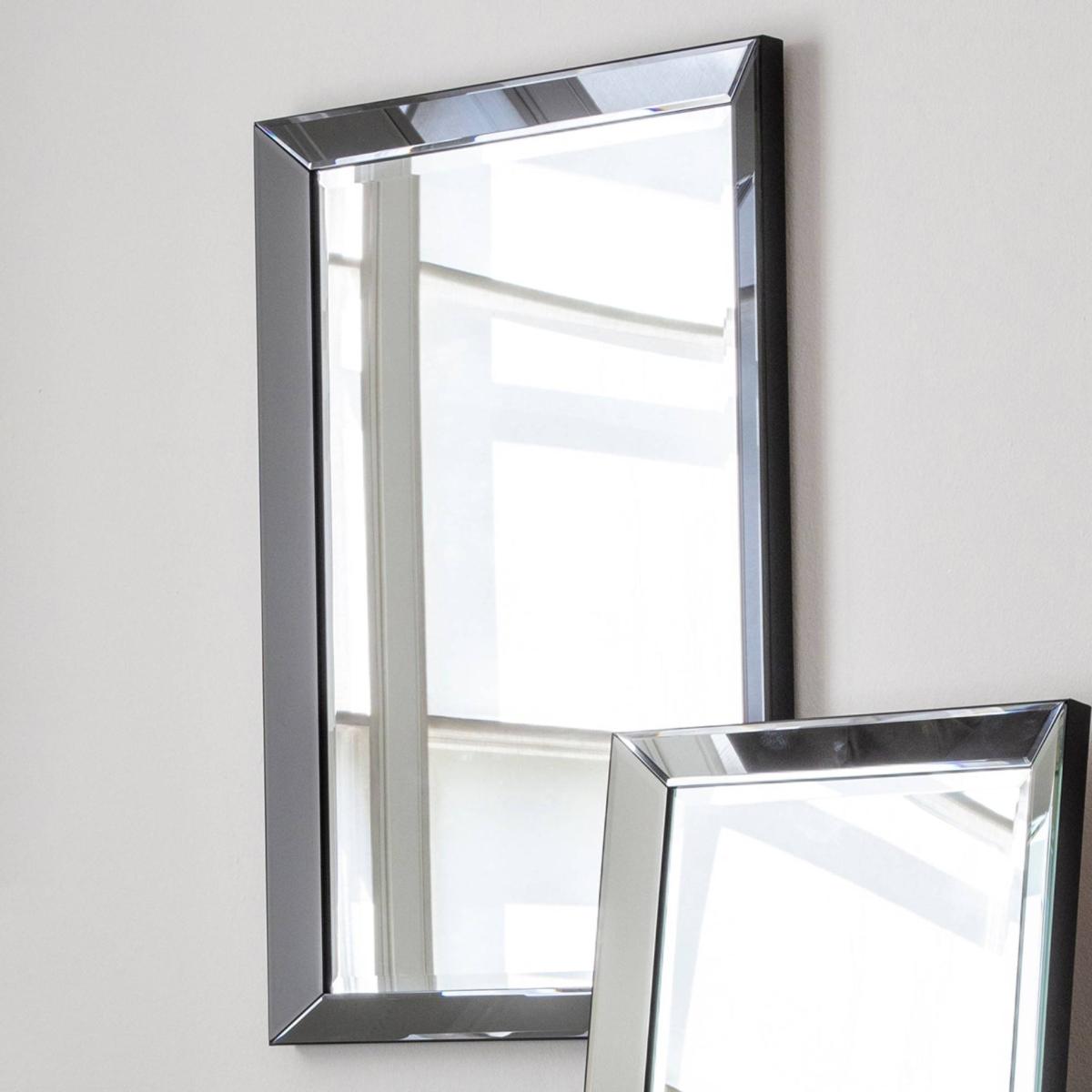 Contemporary mirror boasting a grey glass frame. Contemporary mirror boasting a grey glass frame.