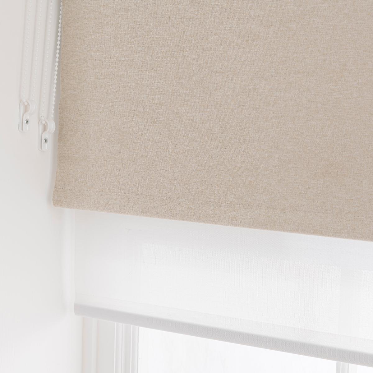 * Creates layered effect* Daylight and blackout option in one* Supplied with all fixings* Can be cut down to suit requirements* Two blinds can be fitted at the same time on to one bracket for ultimate light control The blackout roller is crafted from a stylish, woven texture with a brushed effect finish and the sheer fabric features a subtle texture diffusing external light. This Double Roller blind creates a layered effect at your window and gives you both daylight and blackout options. The sheer layer allows light to flow into a room while offering some privacy, whereas the blackout layer prevents unwanted external light from entering your home and provides complete privacy by blocking the view into your home from the outside. The Luna Sheer Duo roller blind is available in a variety of sizes and colours and is supplied with all fixings included for added convenience.