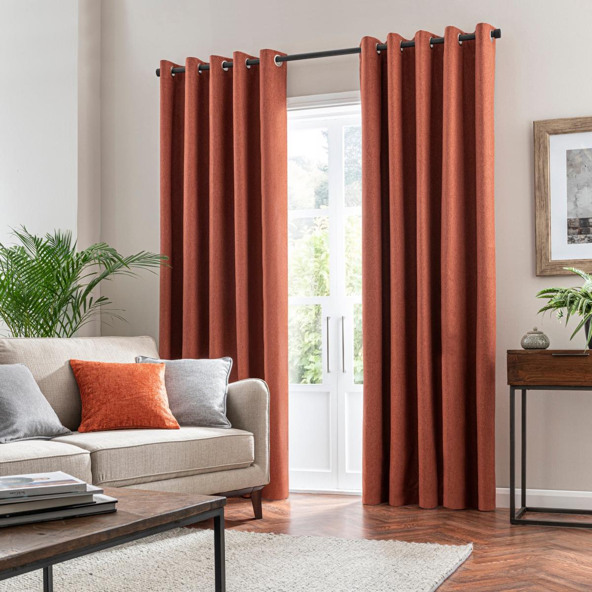 I love this set of Luna apricot curtains for their versatility and subtle colour palette. The apricot hue adds warmth, while the grey detail offers a contemporary edge that complements both neutral tones and more vibrant colour schemes. These curtains work well in cosy living rooms or bedrooms where you want to soften natural daylight without completely blocking it out. For styling, pair them with minimal accessories for a modern look, or add textured cushions and throws nearby for a layered, inviting feel. They're also practical - the eyelet header makes hanging straightforward, and the fabric’s quality ensures they hang smoothly, giving any space a polished finish.